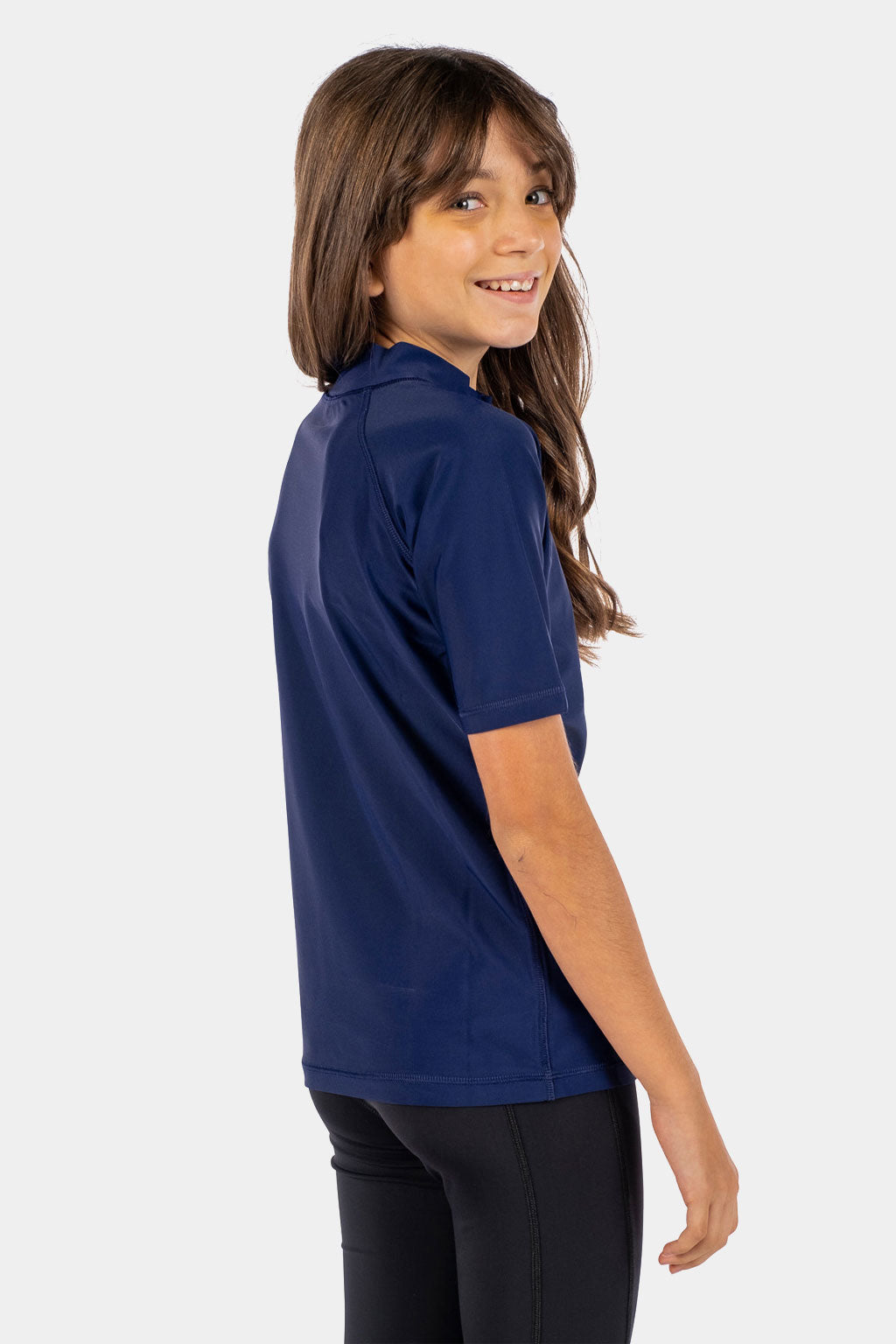 Stretchable and soft, this short sleeved rash guard will provide your child with protection from the sun while enjoying the beach or pool. Longer in length in the body provides extra comfort and coverage to keep them UV-protected whether they are playing or learning to swim. Raglan-style short sleeves extend to just above the elbow and minimize bulk under the arms. Go Ahead, Love the Sun!