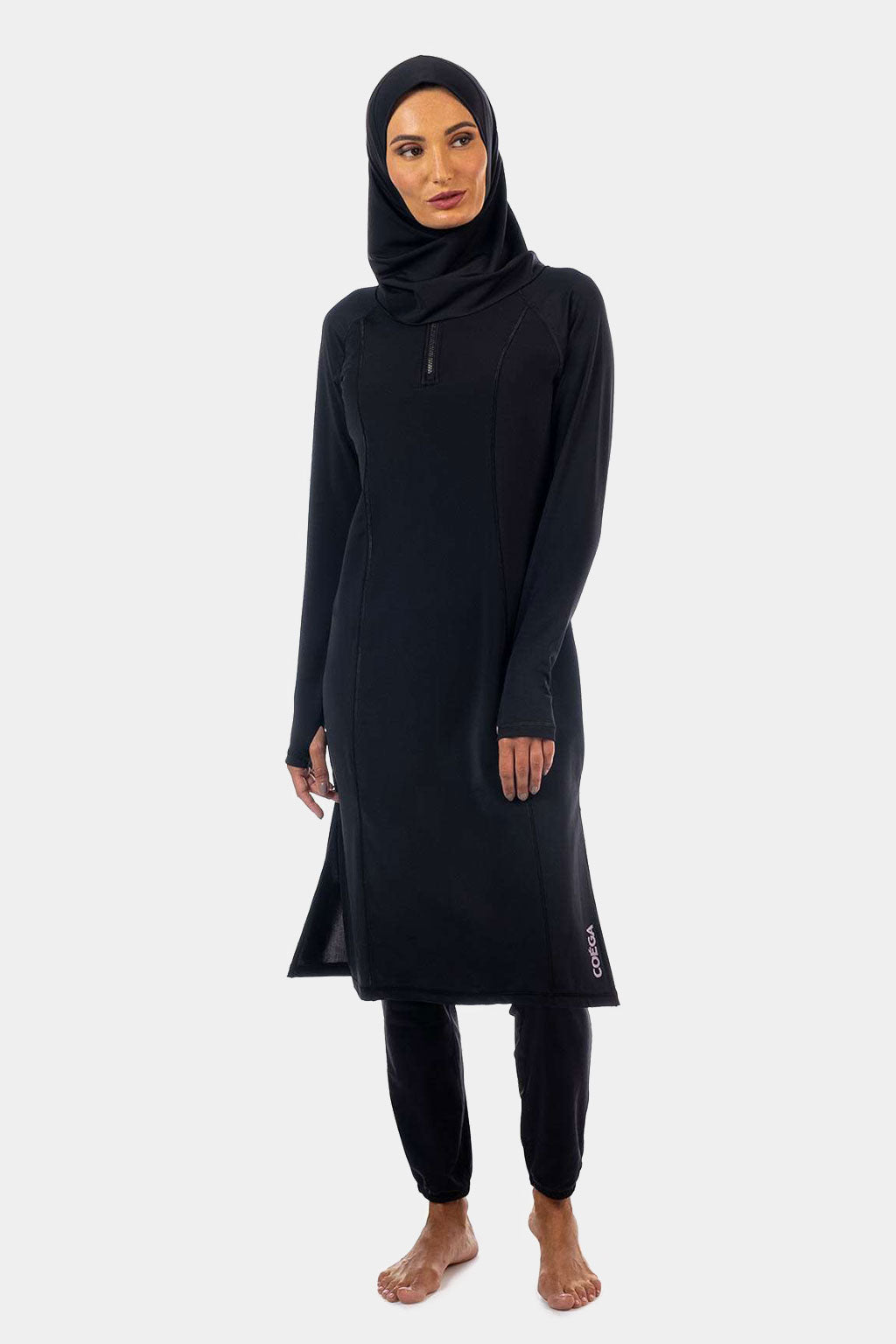 This unique and comfortable three-piece design is perfect whether looking for modesty or extra sun protection, while enjoying water sports at the beach or pool. The Islamic Suit is a best-seller in the Modest swimwear collection made with soft stretch fabric, the outfit includes a long sleeve Full Swim Tunic that sit just below the knee in length with coordinated full length Swim Trousers and a well-fitted Swim Shaela.