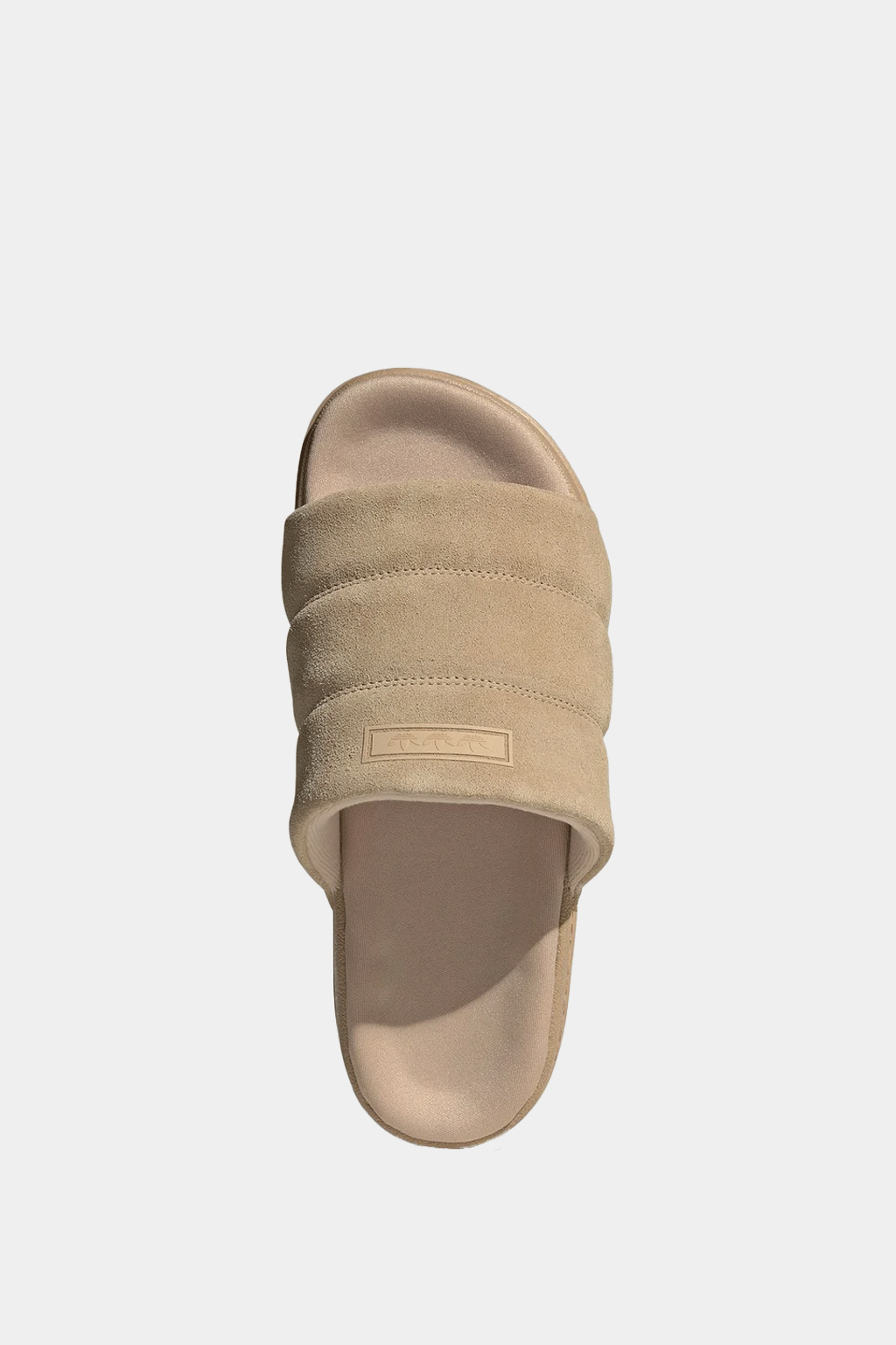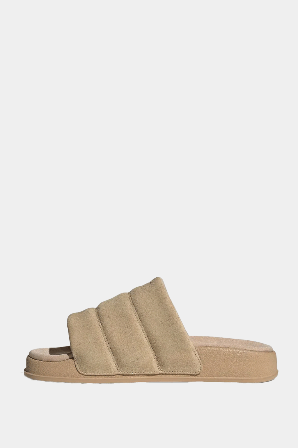 Experience comfort and style with the adidas Adilette Essential Slides in a neutral 'tan' hue. Designed with a soft, contoured footbed for a customized fit, these slides offer both support and comfort. The durable synthetic upper and grippy outsole ensure excellent traction, making them perfect for casual wear or post-workout recovery. Elevate your everyday look with the adidas Adilette Essential Slides, the ideal blend of comfort, style, and durability.
