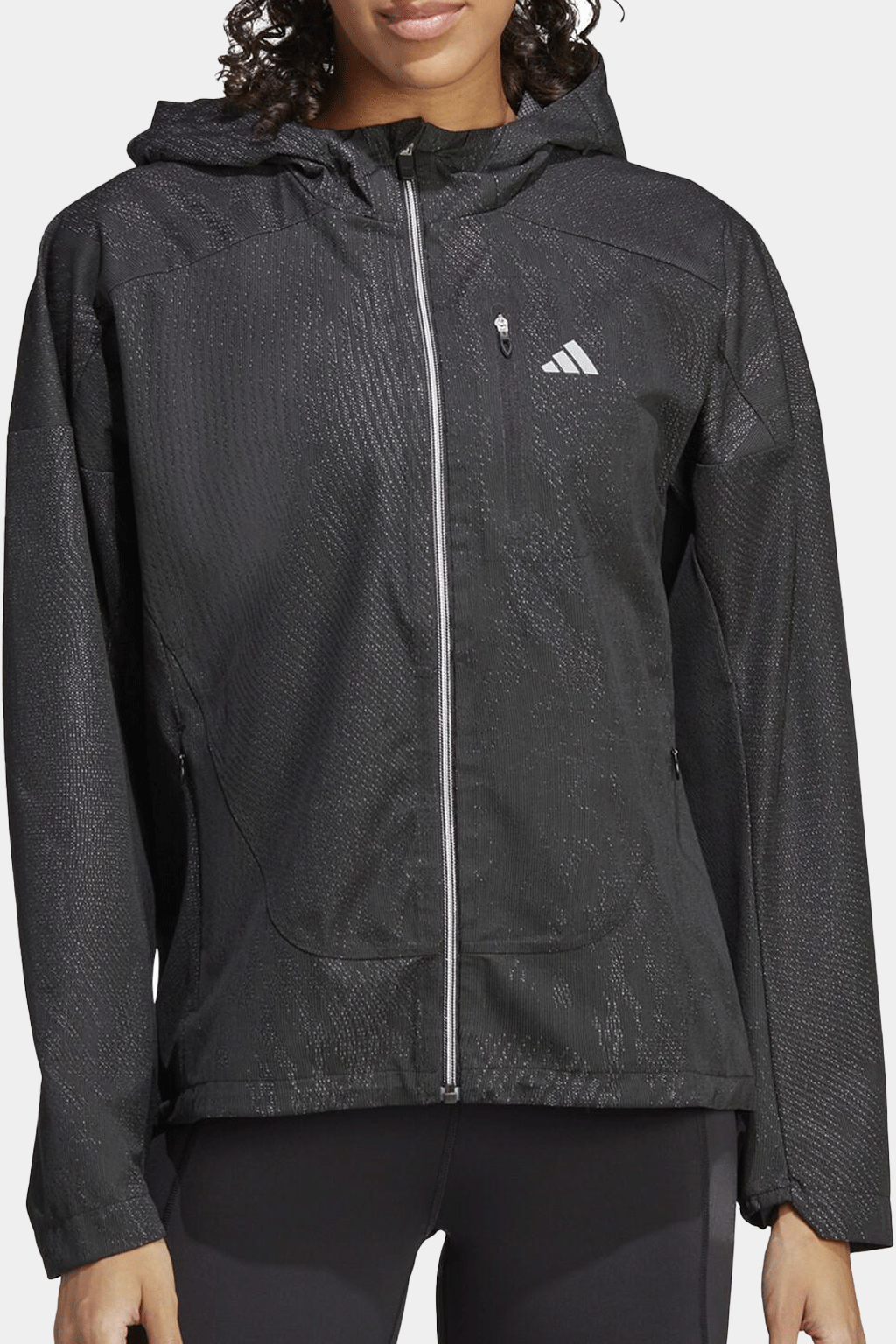 A lightweight running jacket designed for performance and comfort. Made in part with recycled materials, it features adidas WIND.RDY technology to block out cold breezes while maintaining breathability. Pre-shaped sleeves allow natural movement, making it perfect for cool, cloudy