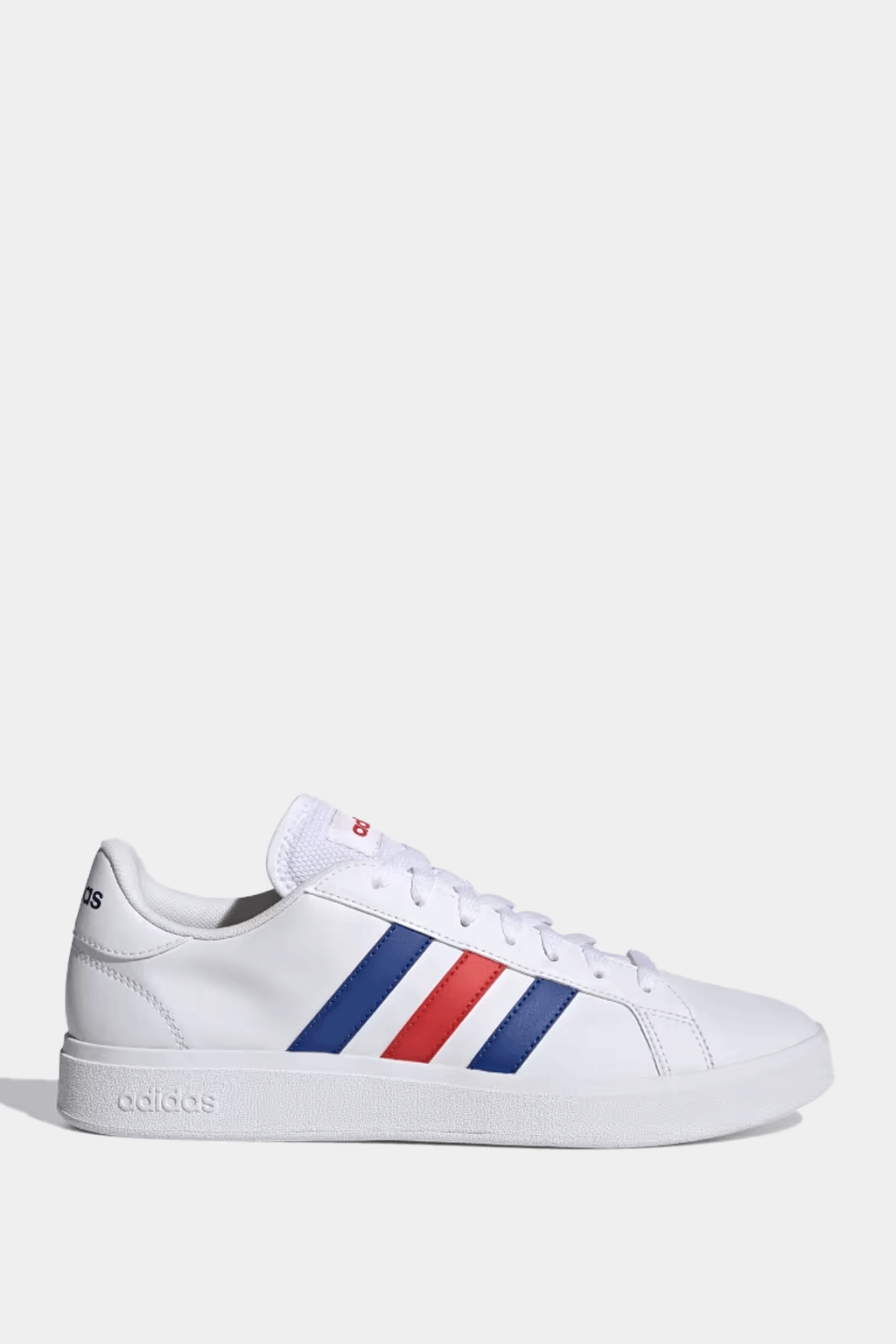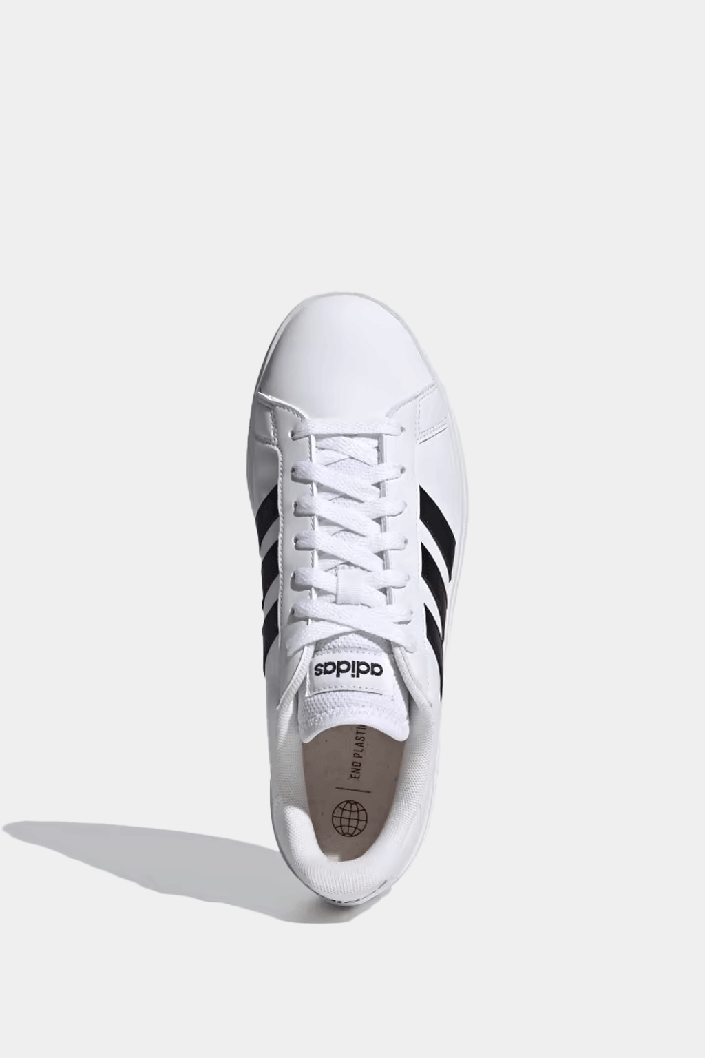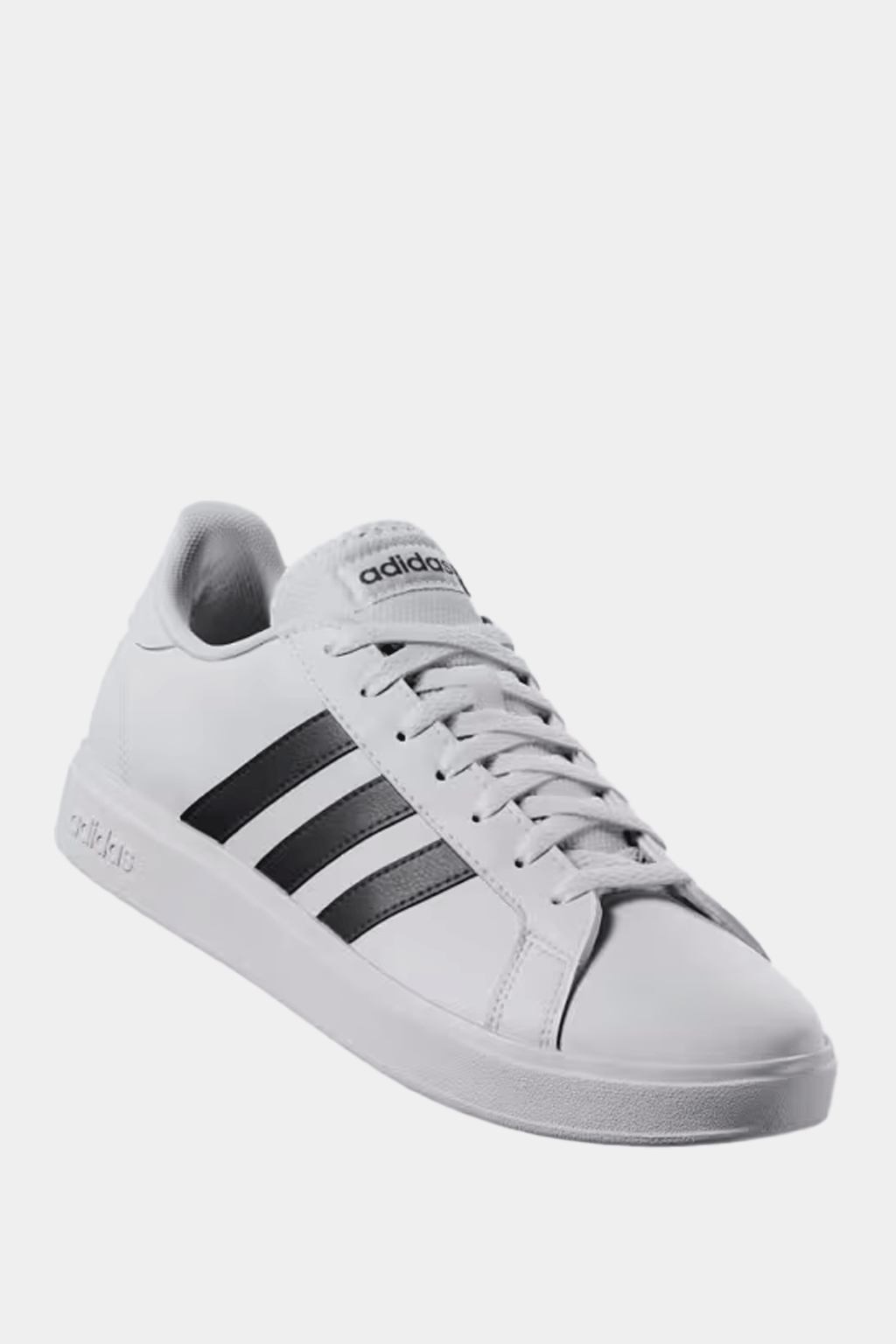 Level up your sneaker game with a fresh take on a classic. These adidas Grand Court shoes blend retro vibes with modern updates, featuring a smooth synthetic leather upper and iconic 3-Stripes style. A sturdy capsule provides durable traction‚ even in wet weather‚ so you can step out with confidence. Made with at least 50% recycled content, they‚ are a smart, sustainable addition to your sneaker rotation.