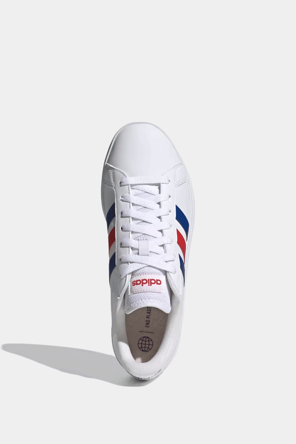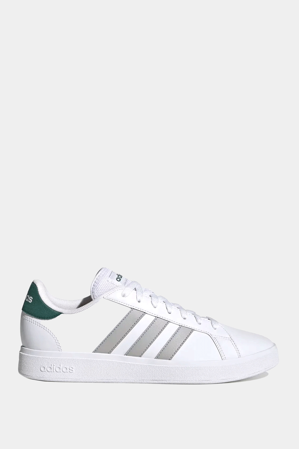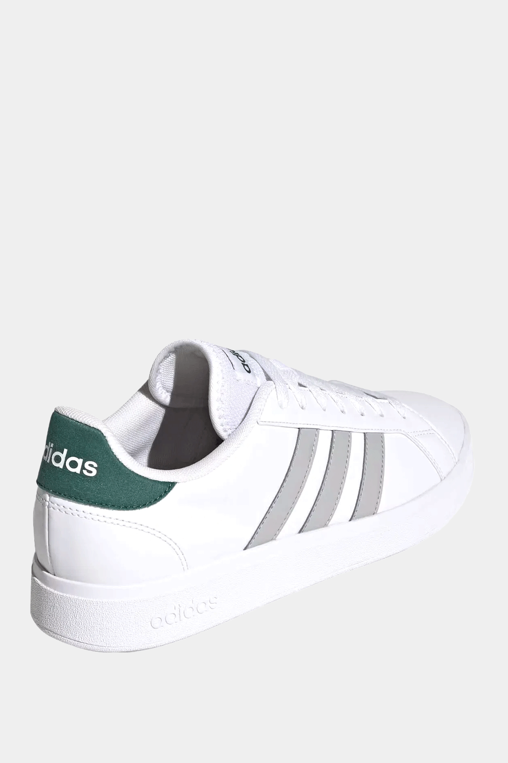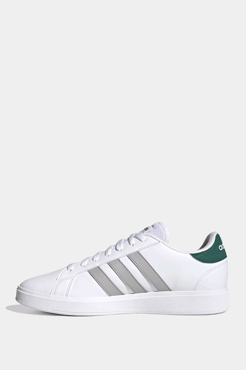 Level up your sneaker game with a fresh take on a classic. These adidas Grand Court shoes blend retro vibes with modern updates, featuring a smooth synthetic leather upper and iconic 3-Stripes style. A sturdy capsule provides durable traction‚ even in wet weather‚ so you can step out with confidence. Made with at least 50% recycled content, they‚ are a smart, sustainable addition to your sneaker rotation.