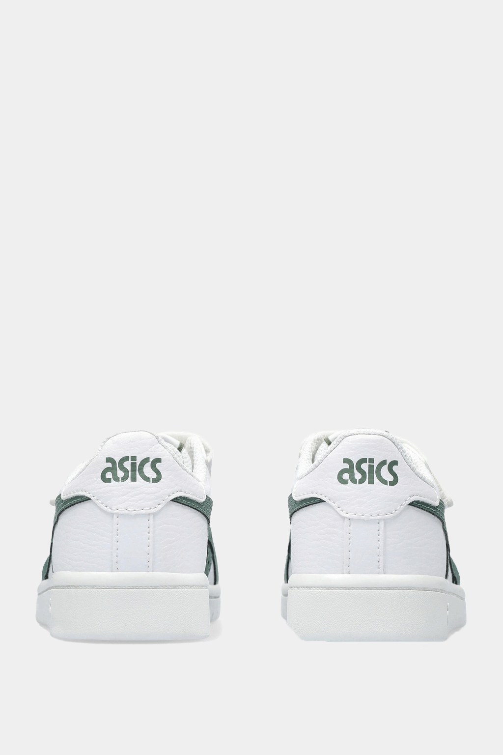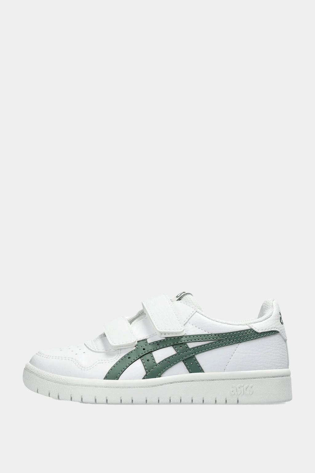 The JAPAN S PS shoes, reintroduced in kids' sizing, are inspired by the 1981 classic. Featuring a low-top design, court-inspired toe box, and throwback colorways, they offer lightweight comfort with a modified cupsole for lasting cushioning. Nostalgic ASICS branding, including Stripes and "ASICS" lettering, completes the retro basketball look.