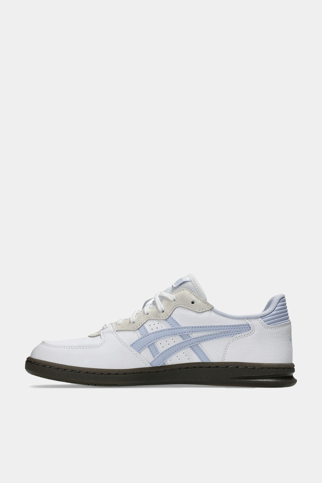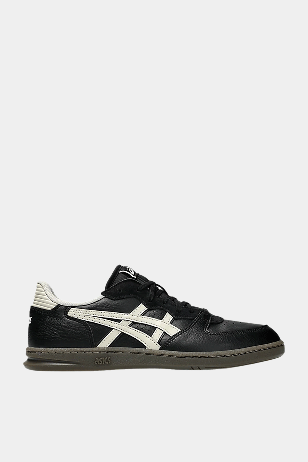 The Asics Sky Hand OG blends vintage style with modern comfort. Originally designed as a handball shoe, it features a full-grain leather upper and a sleek gum rubber outsole for a timeless look. The perforated toebox enhances breathability, while retro Asics striping adds classic flair. Finished with slender laces, off-white suede eyelets, and silver foil detailing at the ankle, this shoe is perfect for style-conscious sneaker enthusiasts.