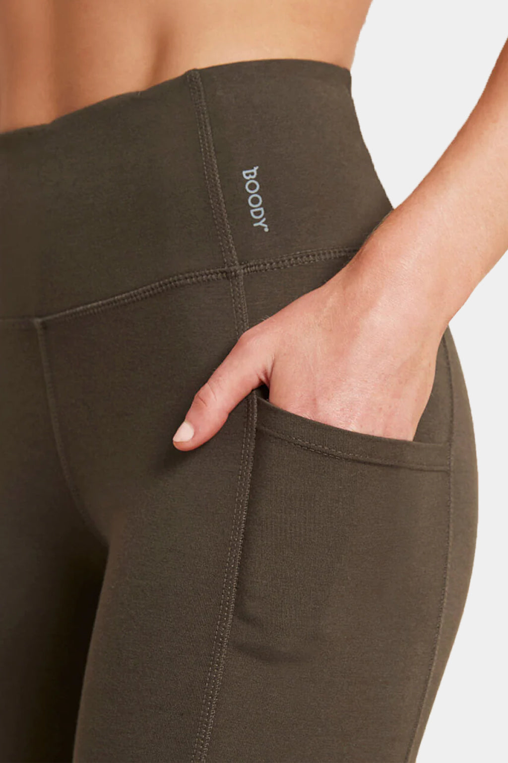 Crafted from organically grown bamboo and organic cotton, these breathable, stretchy shorts offer durability and all-day comfort. The high-waisted fit flatters your silhouette, while the mid-thigh length provides the perfect balance of coverage and mobility. Two convenient side pockets and a discreet hidden pocket keep your essentials secure, making them ideal for workouts, cycling, or casual wear.