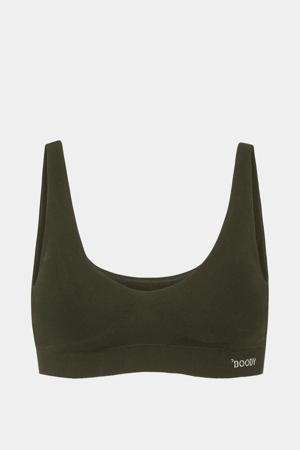 The Boody Padded Shaper Crop Bra offers wire-free design for maximum comfort. With smooth and lightly padded removable cups, it prevents nipple visibility and provides soft contour ribbing for light-medium support (up to a DD-cup). The non-adjustable, wide fabric straps ensure shoulder comfort and the easy pull-on style, along with four-way stretch and seamfree design, offer a flexible, comfy and effortless fit.