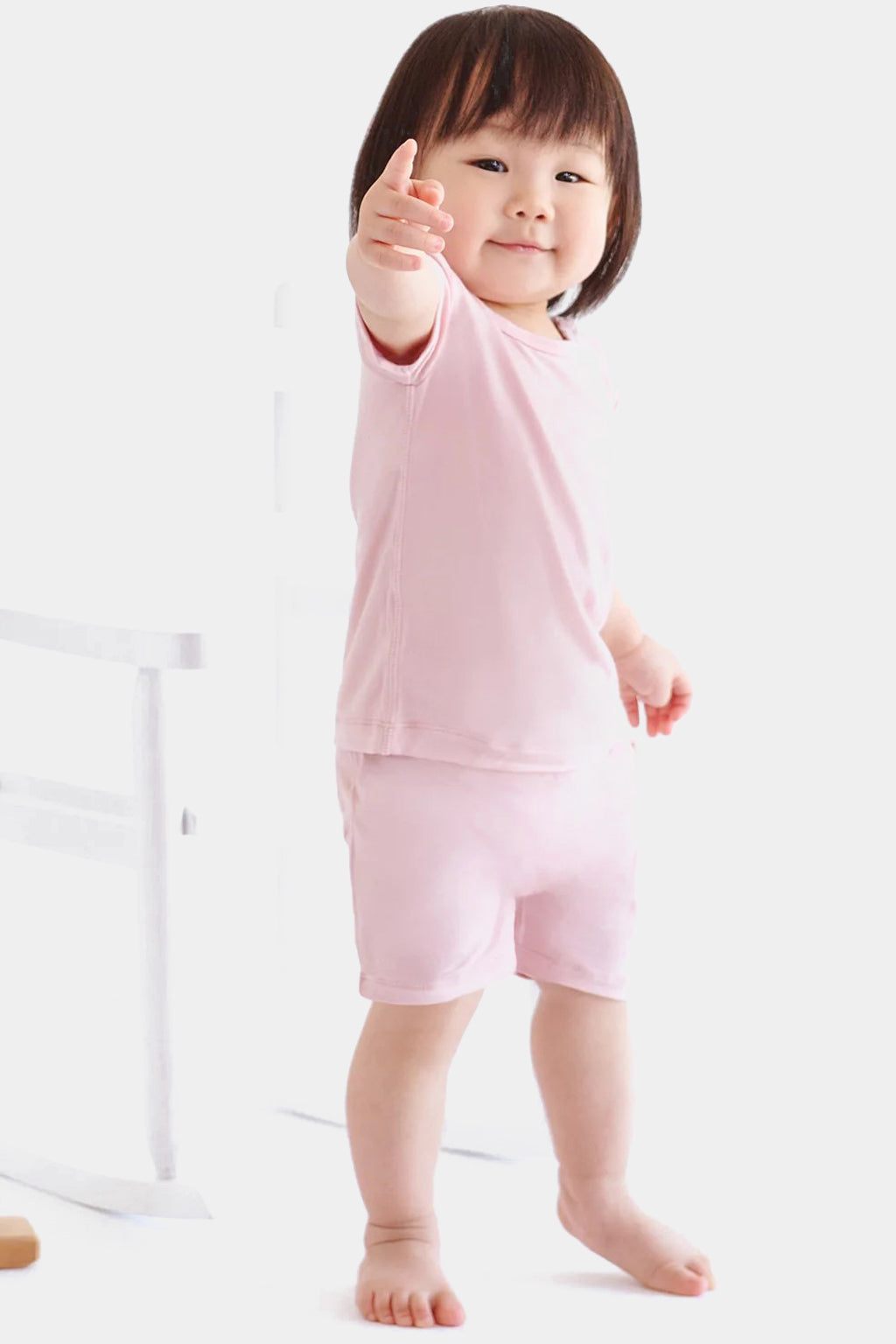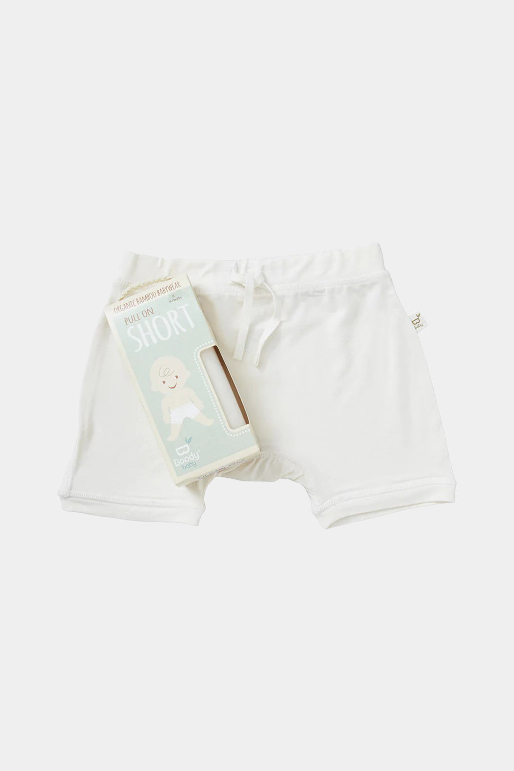 Every baby wants to show off her or his legs and these baby pull on shorts are the perfect article. Designed with stretchy fabric and an elastic waistband, they‚ all take you just a moment to pull on and look excellent over bodysuits and paired with our classic T-shirt. A simple, warm weather outfit.
