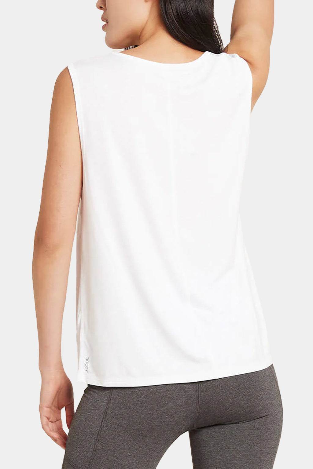 Boost your workout game with Boody's Women's Active Muscle Tank Top. Made with a light and breathable fabric weight, this white tank is crafted from 95% Viscose and 5% Elastane Viscose, which is derived from bamboo for added softness and sustainability. Stay comfortable and stylish during your workouts.