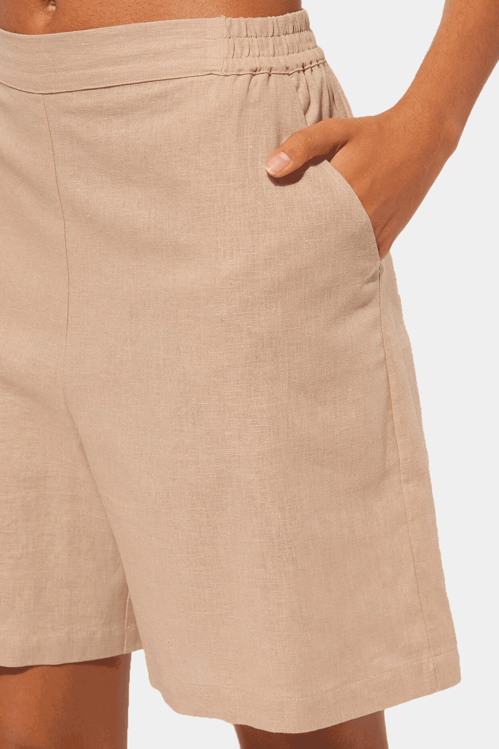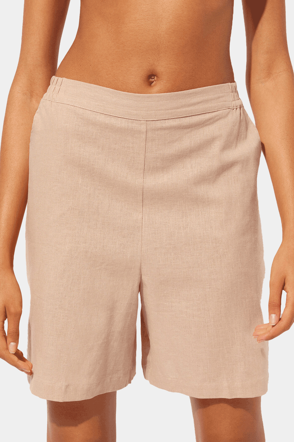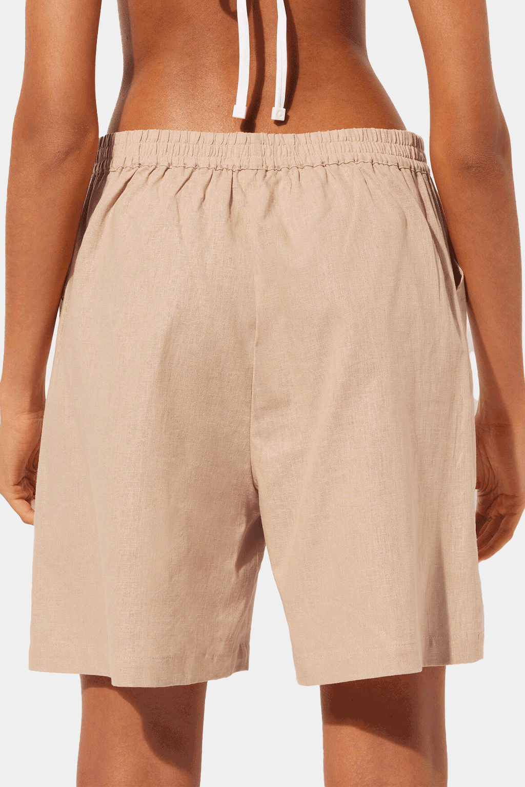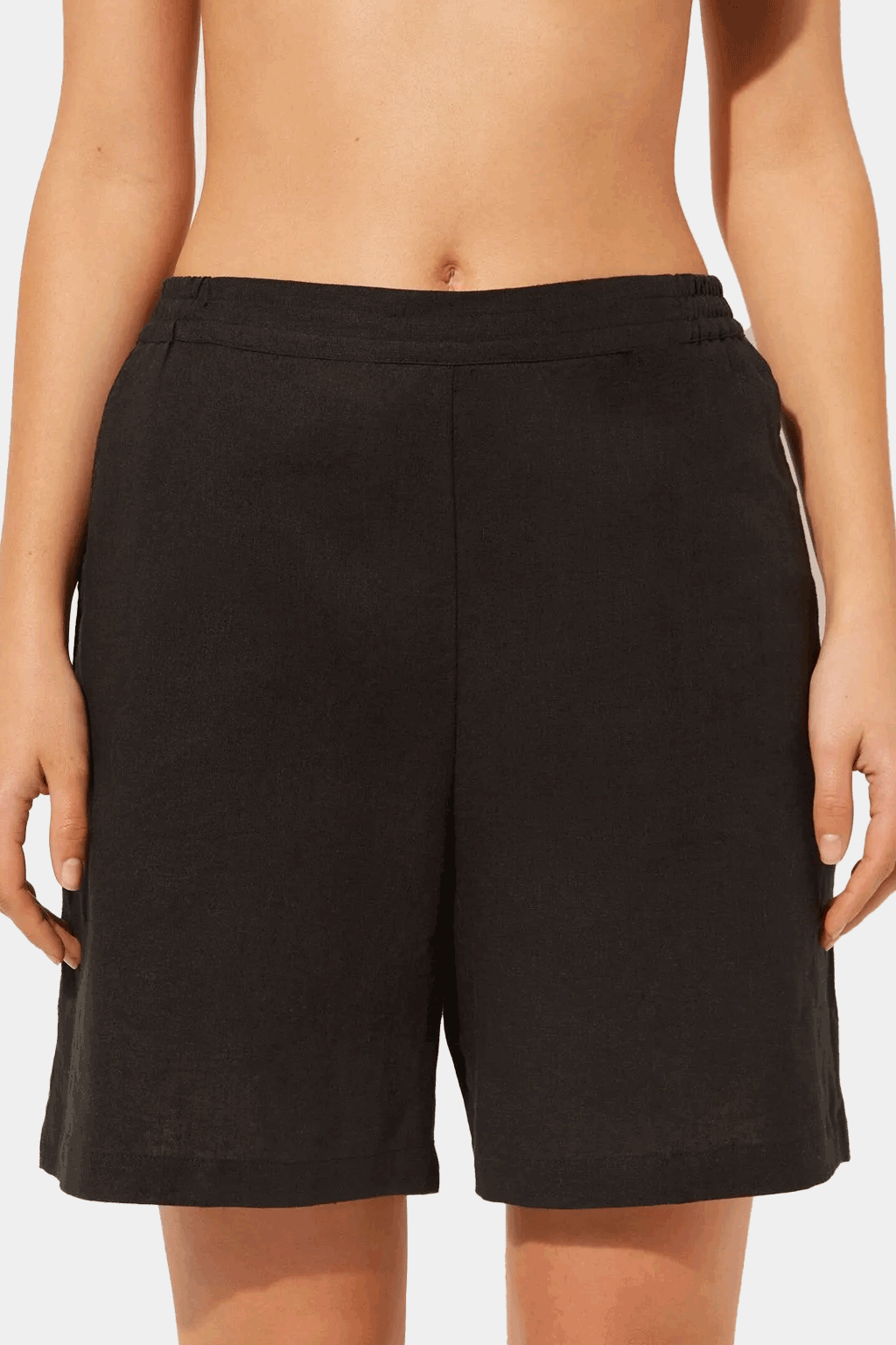 Easygoing and versatile, these linen-cotton shorts feature a relaxed fit, soft elasticated waistband, and handy side pockets. Cut to an above-the-knee length and available in multiple colours designed to pair effortlessly with our swimwear collection.