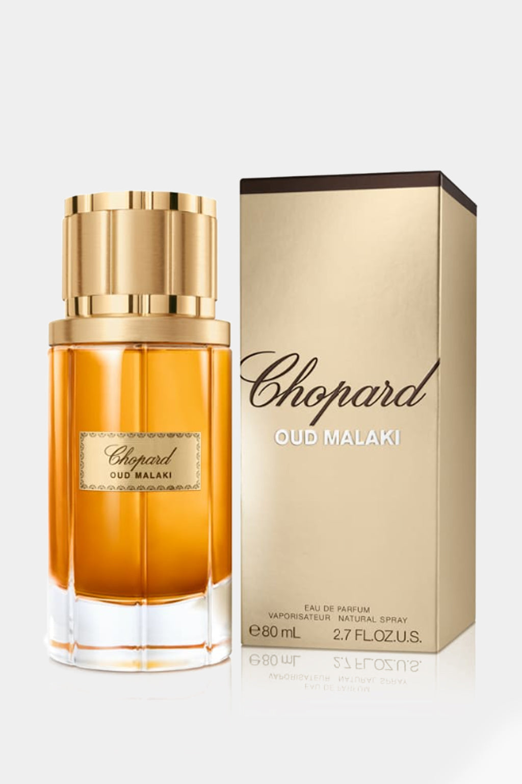 With its rich aromas of leather, amber and smoke, oud is a precious ingredient that has fascinated mankind for millennia. With Oud Malaki, Chopard offers the ultimate expression of East-meets-West in a powerful, masculine fragrance. This seductive, amber-colored scent opens with luminous top notes, followed by a burst of grapefruit, lavender and herbal Artemisia. Underneath, a warm accord of tobacco and spices gives sensuous body to the scent, evoking the inspiration of Arabian Nights.