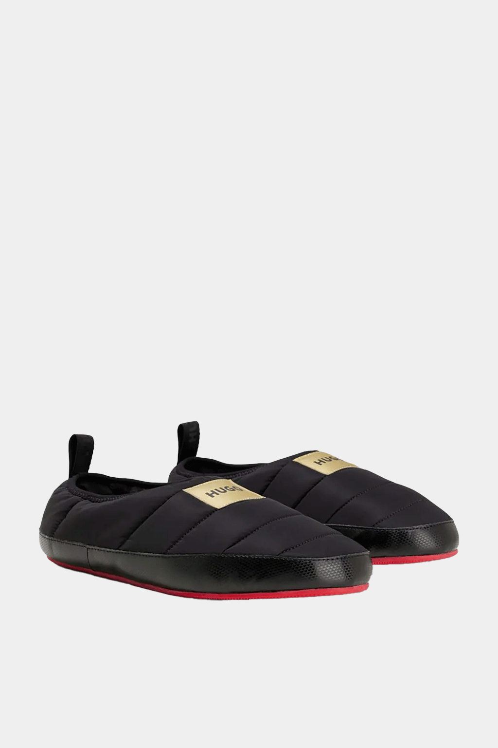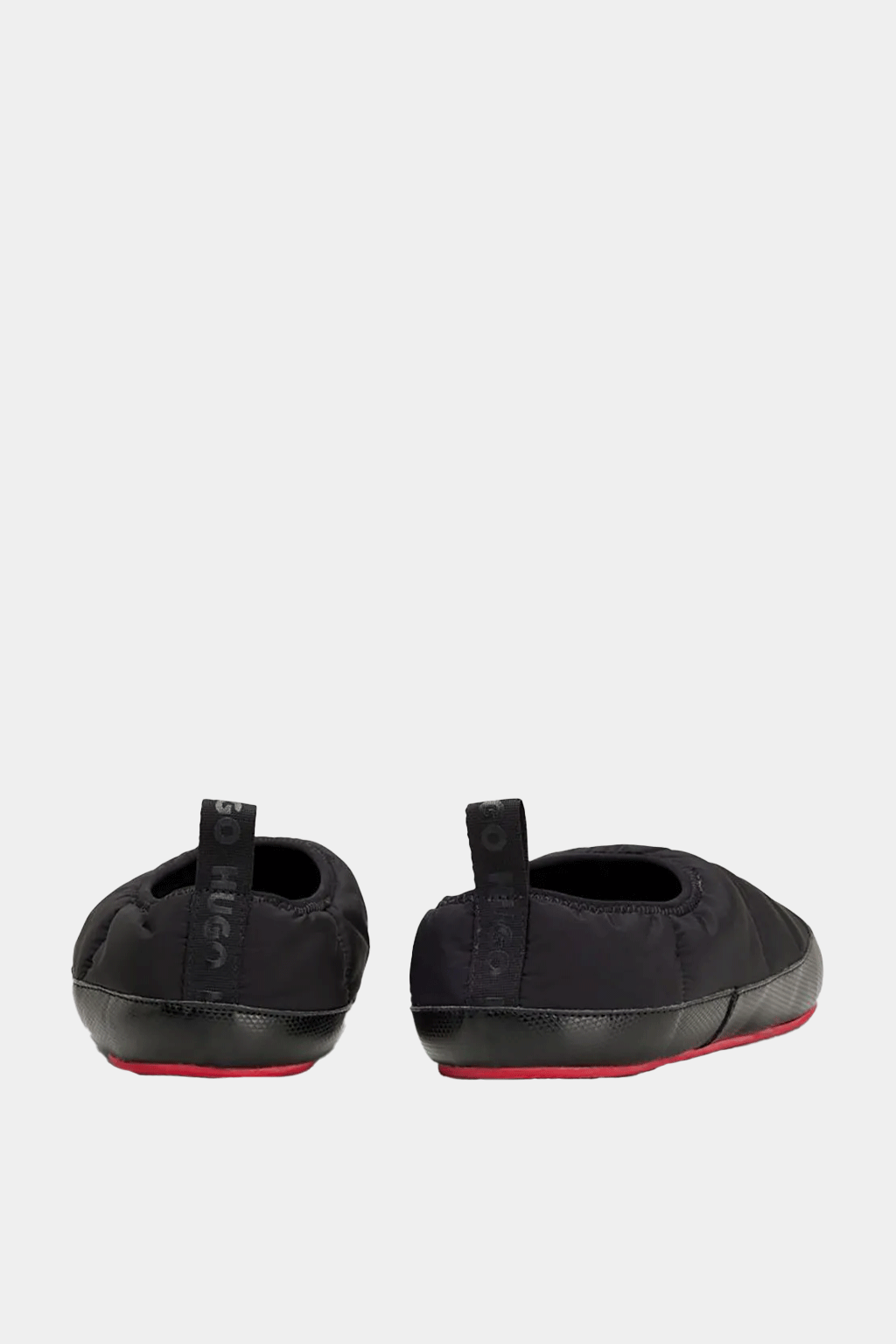 Crafted with a focus on maximum comfort, these dark blue slippers from the house founded by Hugo Ferdinand Boss blend luxury with ease. Made from soft quilted fabric and reinforced with smooth side panels, they offer both style and durability. The elasticated neckline ensures a snug, comfortable fit, while the contrasting thin rubber sole provides flexibility and a refined finish — perfect for effortless, everyday wear.