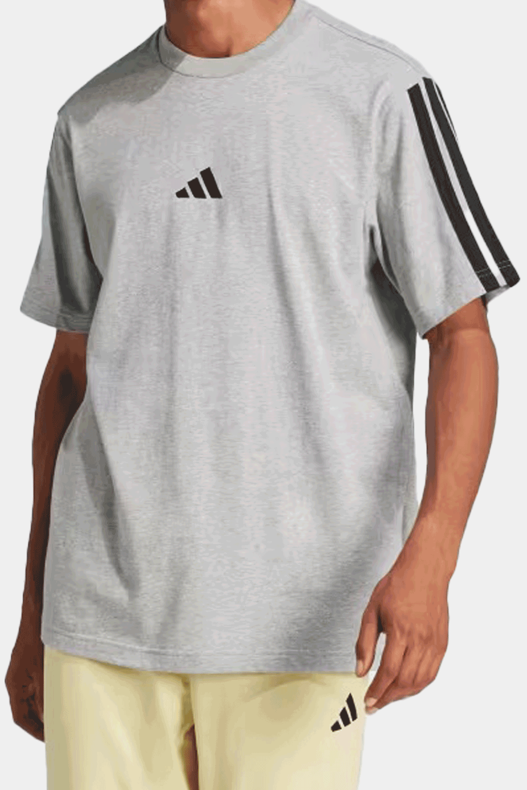 Stay comfortable and stylish with the adidas Essentials 3-Stripes Single Jersey T-Shirt. Crafted from soft single jersey cotton, this tee offers breathable everyday wear. Its classic crew neck and iconic 3-Stripes along the sleeves add a sporty touch, making it a versatile choice for casual outfits or light workouts. Perfect for those who appreciate timeless design and reliable comfort.