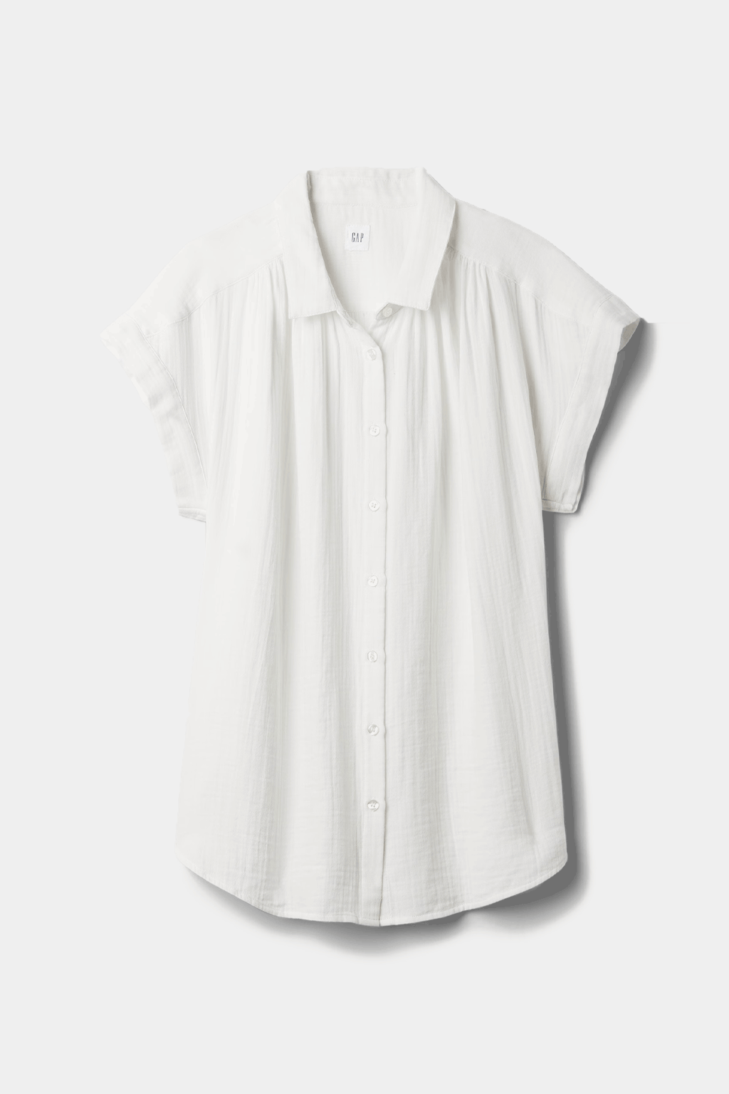 Elevate your casual wardrobe with the Gap Crinkle Gauze Shirt. Featuring a classic collared neck and a comfortable regular fit, this shirt is perfect for everyday wear. Made from lightweight crinkle gauze fabric, it offers a relaxed, breathable feel. Pair it with jeans or chinos for a laid-back look. Ideal for any season, this versatile shirt is a must-have for effortless style and comfort.