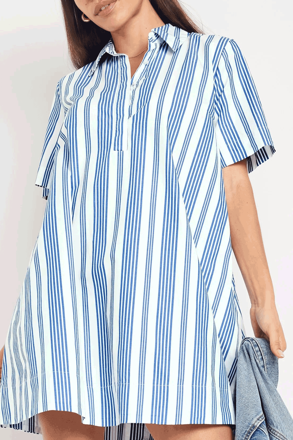 The Gap Mini Shirt Dress is a versatile wardrobe essential, perfect for effortless style. Made from high-quality, breathable fabric, this dress offers comfort and a flattering fit. Featuring a classic button-down front, collared neckline, and a relaxed silhouette, it‚ as ideal for casual outings or a chic office look. Pair it with sneakers or heels for a stylish, on-the-go outfit that transitions seamlessly from day to night.