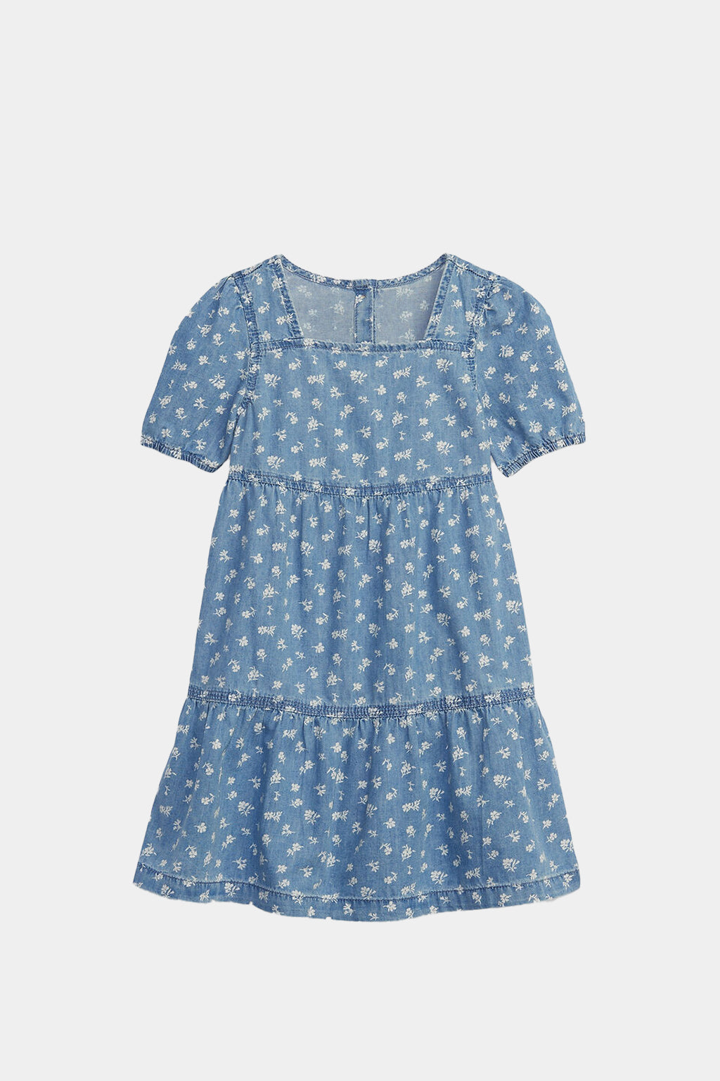 This Gap toddler dress features a stylish floral print, crafted from 100% cotton denim for a modern look. Perfect for any occasion, this dress is both comfortable and fashionable.