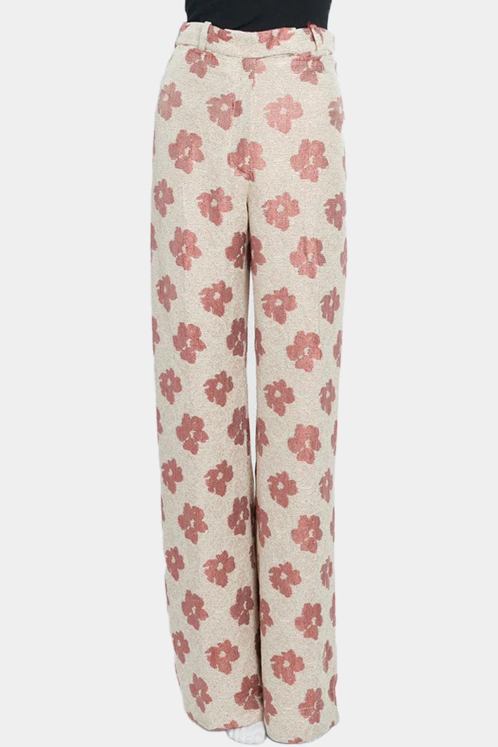 Discover elegance and comfort with Golden Goose's Floral Pants. With a beautiful beige color and intricate burgundy flower pattern, these maxi pants are perfect for any occasion. Featuring two front pockets and one back pocket, these pants are adaptable to any figure for a stylish and effortless look.