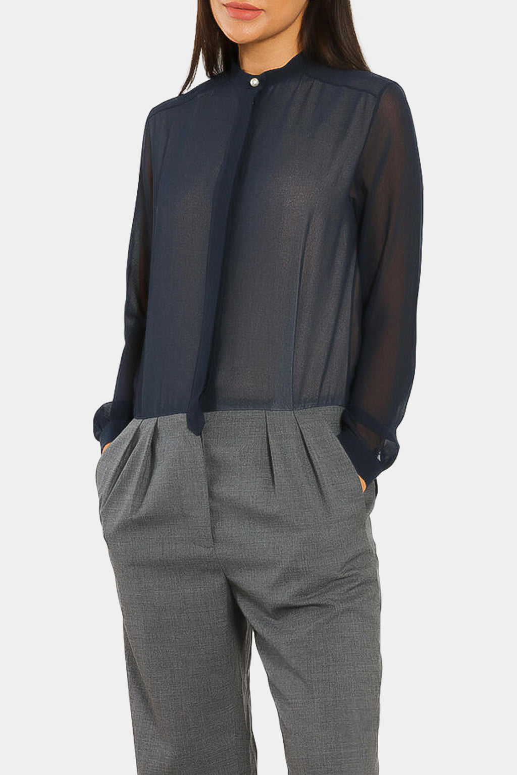 Golden Goose presents their Phoenix Jumpsuit in a sleek combination of blue and grey, featuring a Mandarin collar and crafted from 100% Polyester for durable wear.