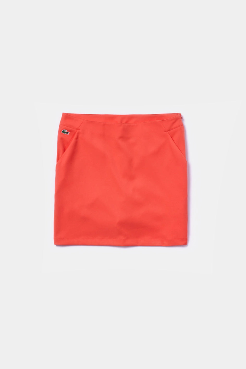 This zippered skirt by Lacoste skirt in Canada, made in durable gabardine, is open on one side for maximum freedom of movement. The soft tissue in bright orange terry. Mesh waistband on the front and back has the Lacoste mark, a small green gator on the right waist that brings a great style.