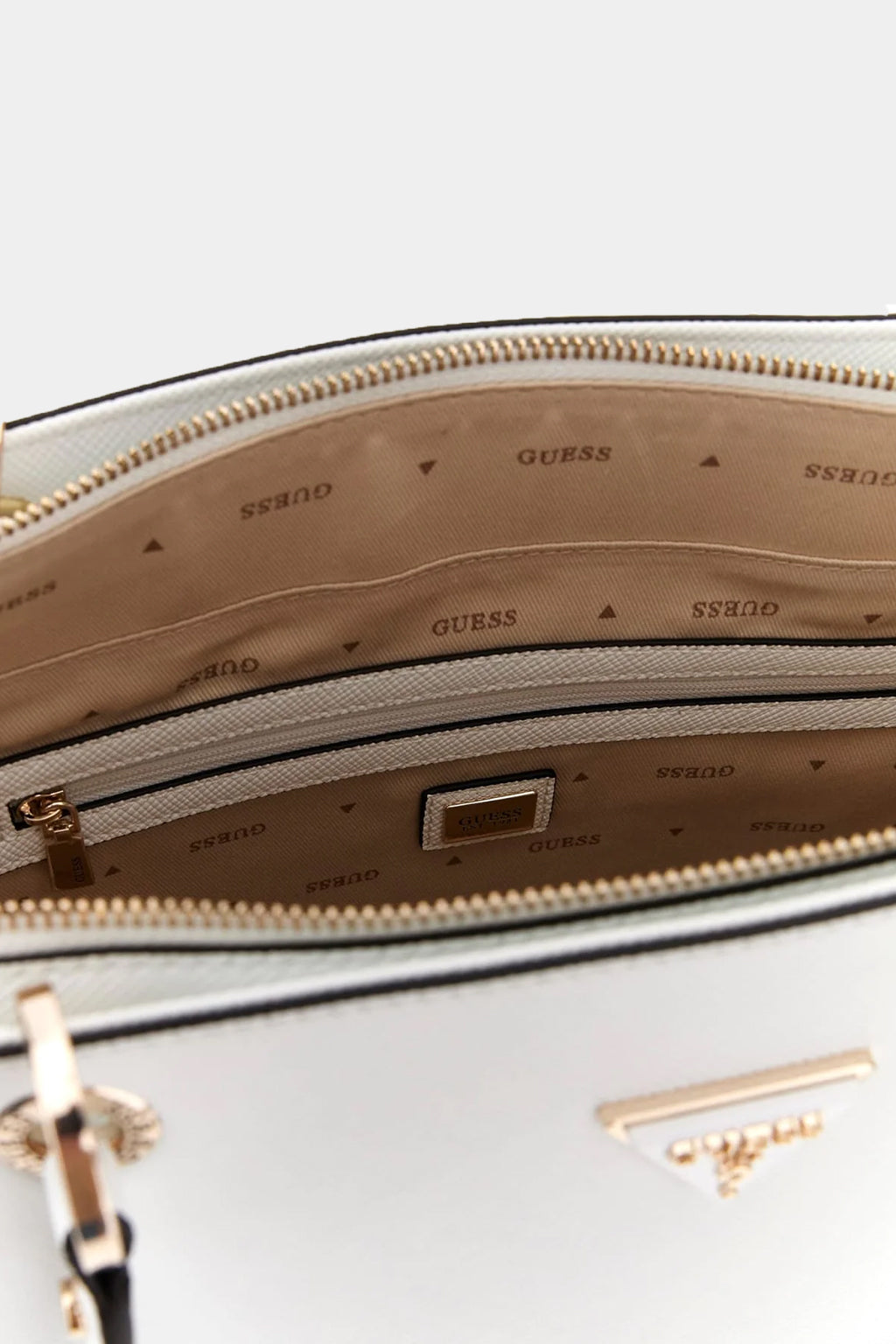Expertly crafted from quattro G printed faux-leather material, the Guess - Noelle Women's Shoulder Bag exudes elegance and sophistication. This stunning bag offers a versatile and durable option for any stylish woman, making it the perfect addition to any outfit. Embrace the timeless design and luxurious feel of this must-have accessory.