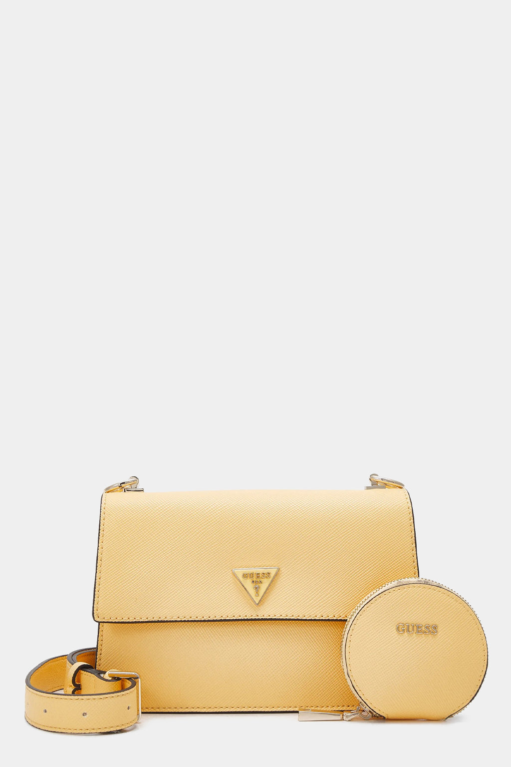 The Guess Alexie Crossbody Flap Set is the perfect accessory for any day. Crafted with a sophisticated flap design and secured with a magnetic snap, it features an adjustable shoulder strap made with durable polyurethane. Carry your essentials in style!