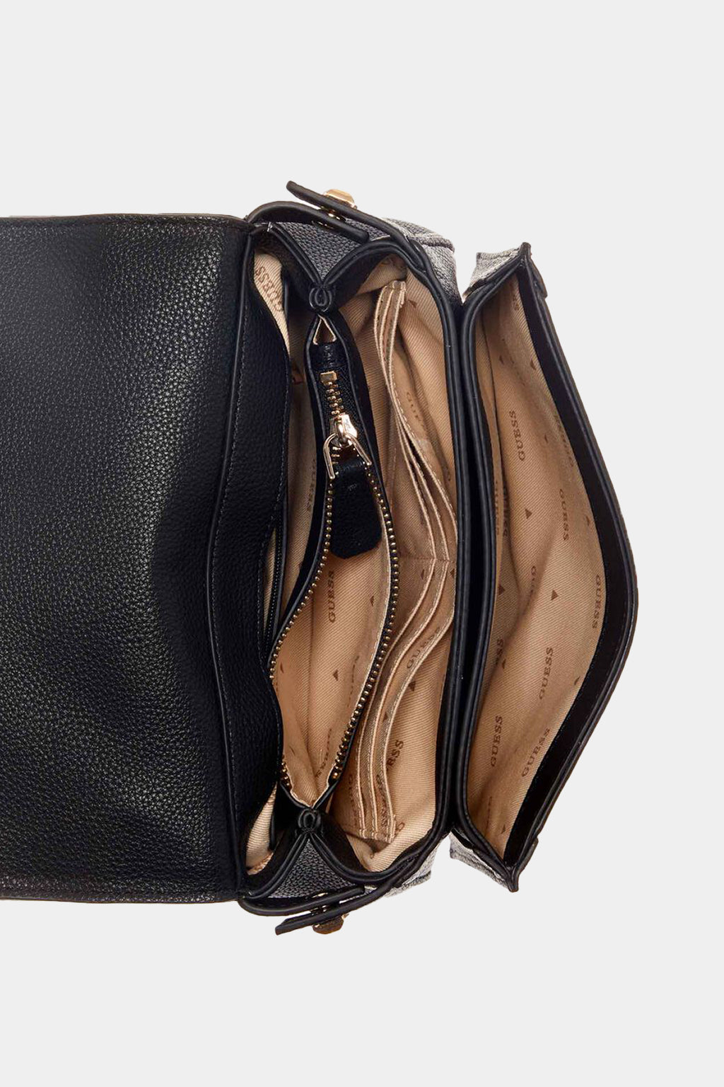 The Guess Angy Top Handle Flap bag exudes classic elegance, with a functional twist. Its compact size belies its storage capabilities, including front pockets and partitioned zippers. The versatile shoulder strap allows for 2-way styling, perfect for any occasion - from dates to parties to travels.