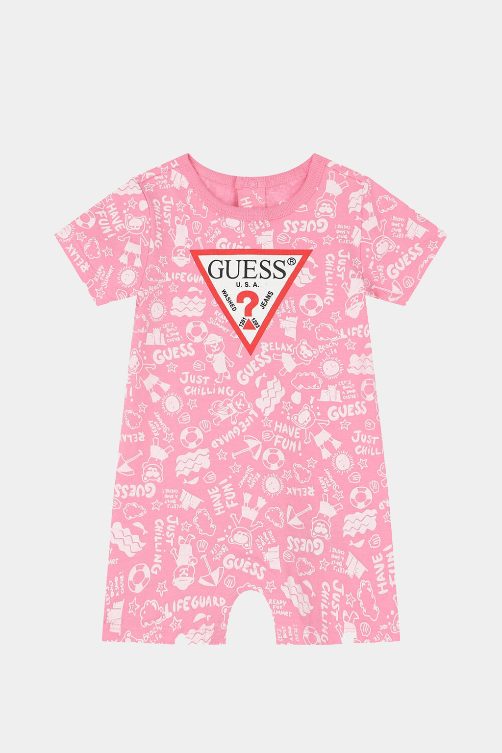 Introduce your little one to style and comfort with our White and Pink rompers by American brand Guess. Made from a soft cotton jersey with a colorful printed pattern, these rompers feature the iconic logo triangle in red, black, and white. With popper fastenings at the back and between the legs, dressing your baby is a breeze.