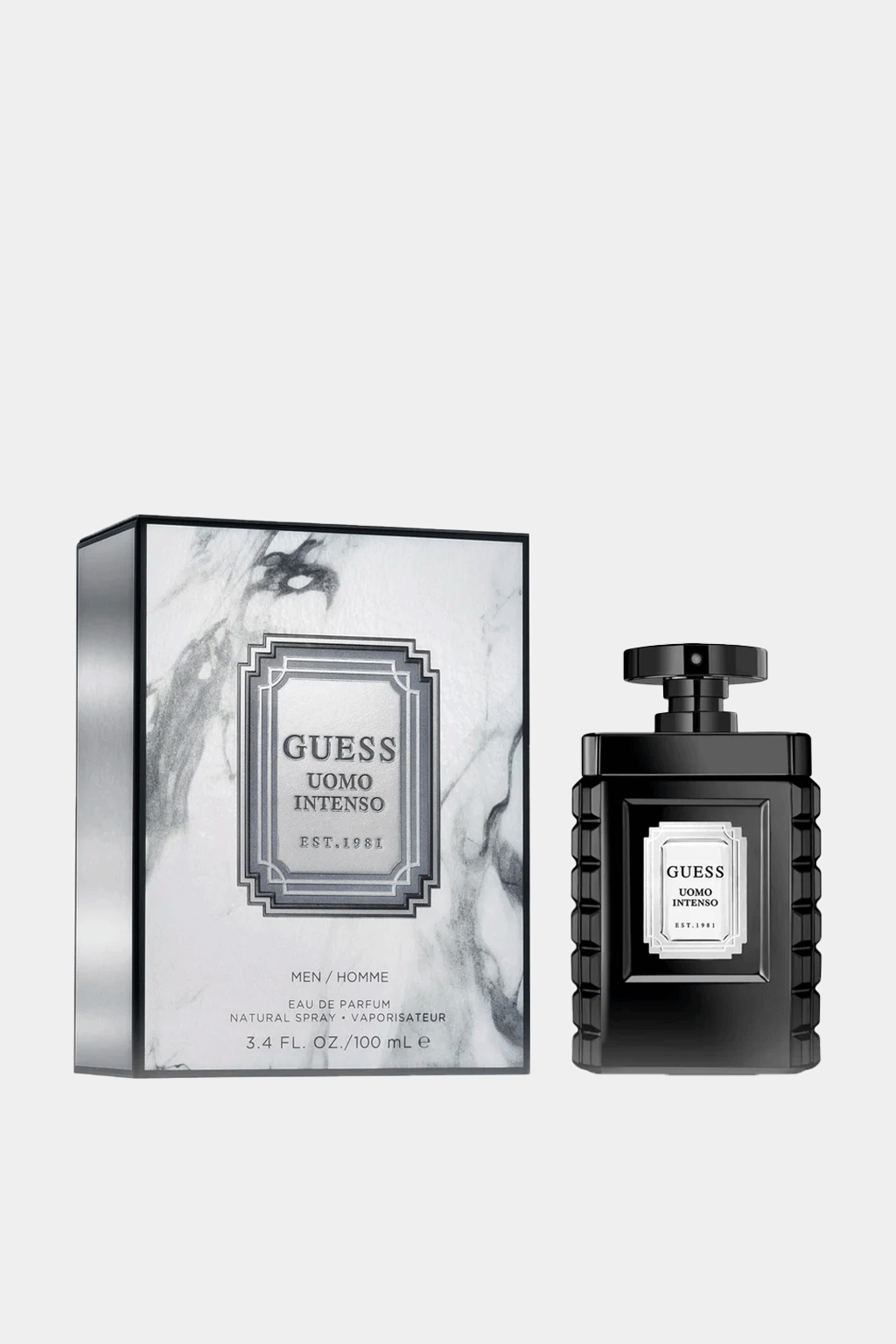 GUESS UOMO INTENSO Eau de Parfum – A bold amber fougère for men, created for thrill-seekers who crave adventure. It opens with Italian Bergamot, Mint Leaf, Ozone, and Armoise, leading into a heart of French Lavender, Spanish Thyme, Orange Blossom, Cinnamon Bark, and Sage.
