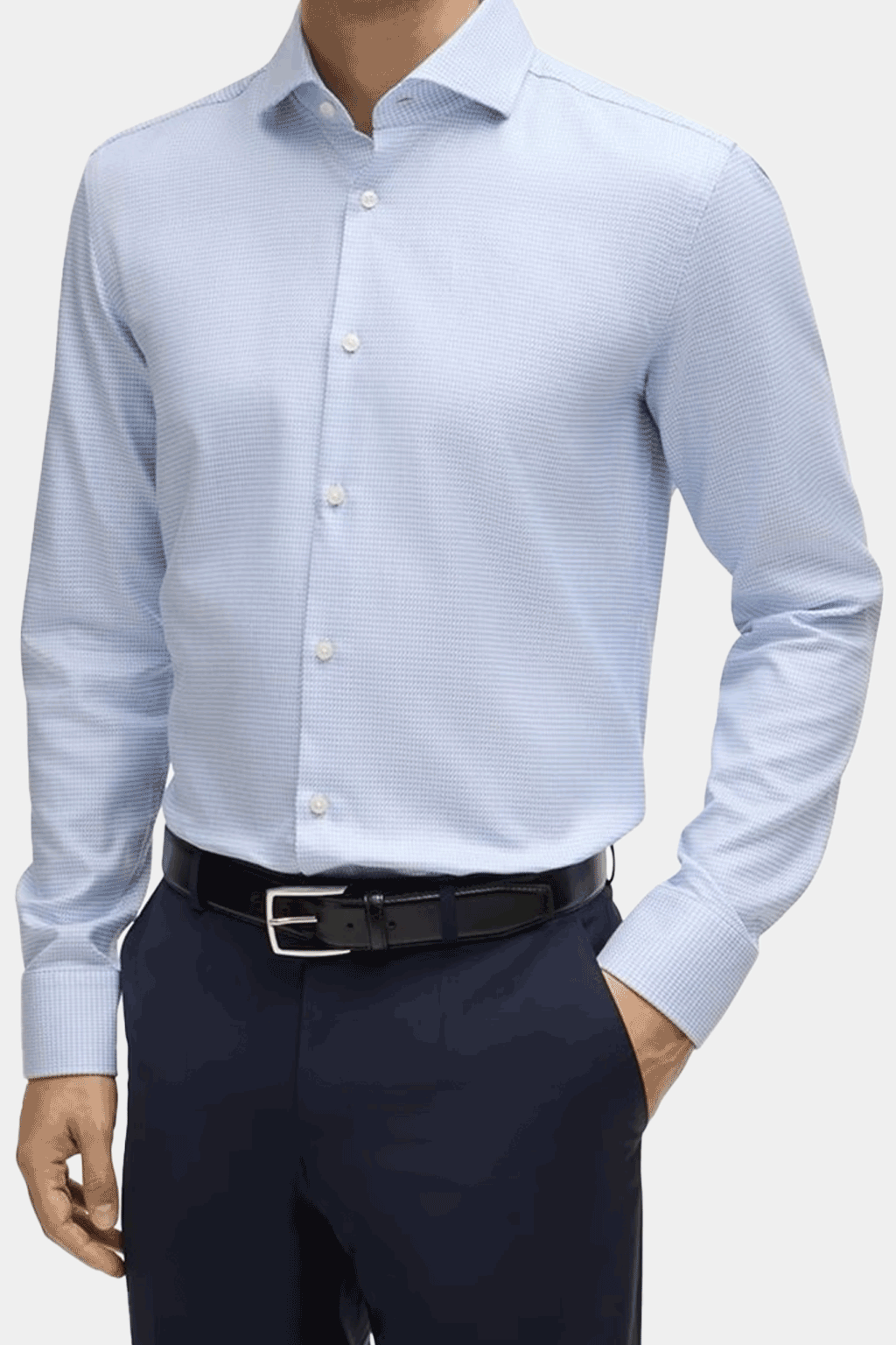 Refine your formalwear with the Hugo Boss H-Hank-Spread-C1-222 slim fit shirt. Designed with a crisp spread collar and tailored silhouette, it's made from premium stretch-cotton for all-day comfort and a polished look‚ ideal for business or evening occasions.