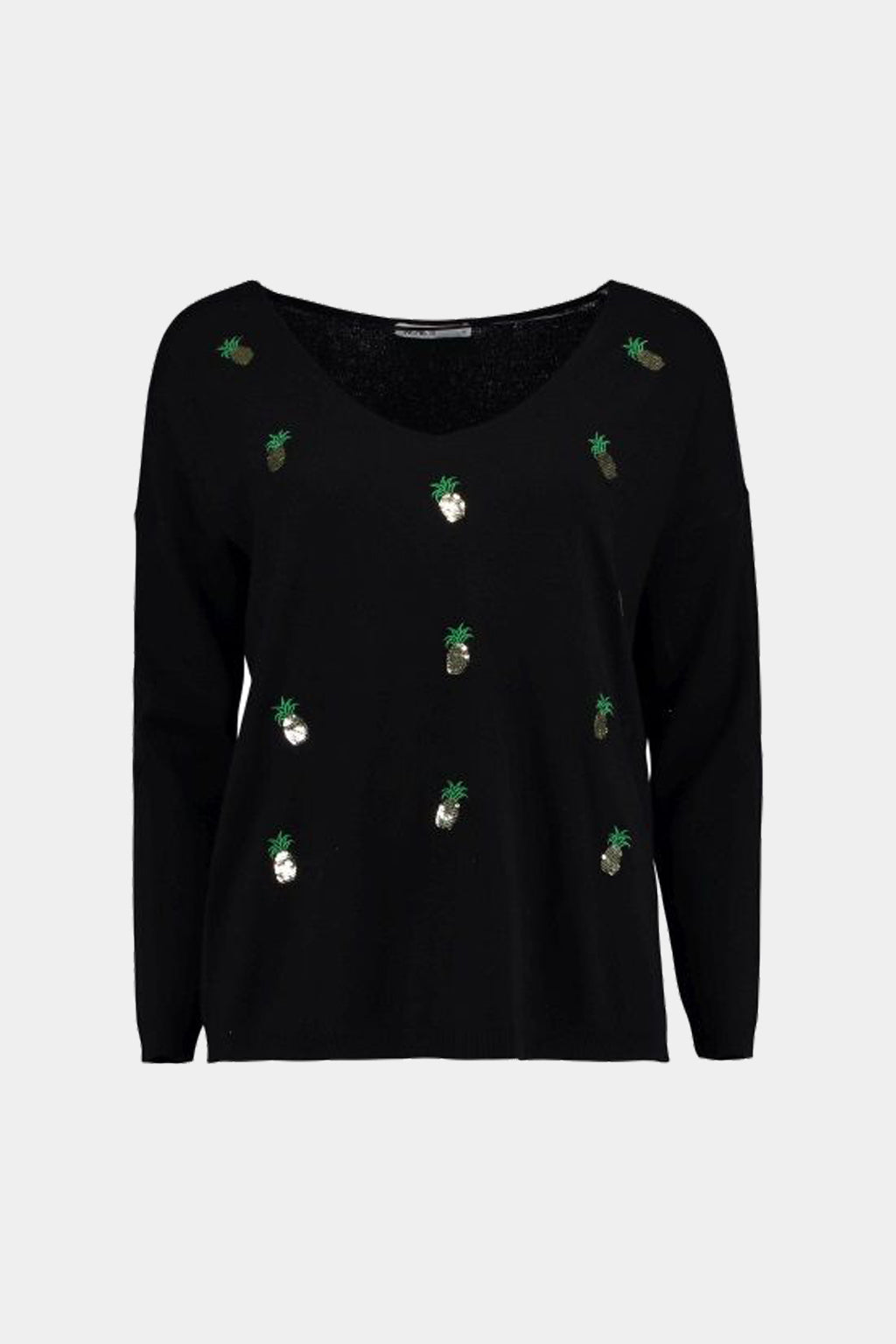Crafted for comfort and style, this Hailys women's sweatshirt features a playful pineapple design on a black background. The regular fit and round neck provide a flattering look for everyday wear. Made with quality materials, you'll love how soft and cozy this sweatshirt feels.