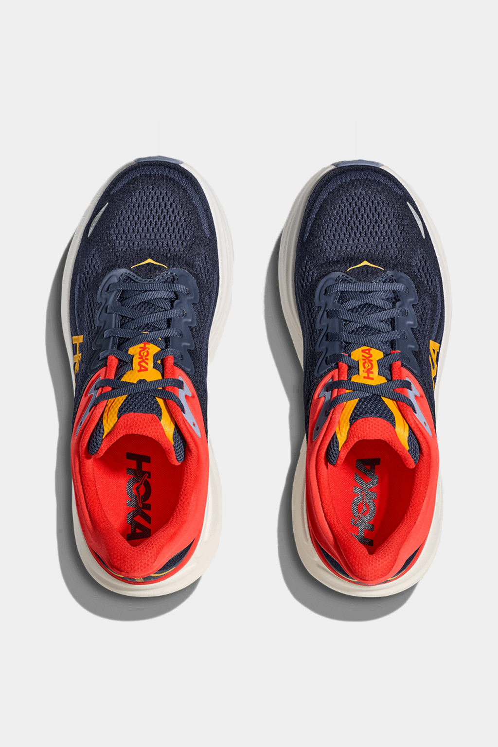 Experience maximum cushioning and next-level comfort with the Hoka Bondi 9 for men — one of Hoka’s most cushioned road shoes, built for smooth strides and stylish everyday wear. Designed with a refined EVA midsole and Meta-Rocker technology, it delivers effortless forward motion and soft, stable landings mile after mile. The engineered mesh upper ensures breathable support, while the durable rubber outsole offers long-lasting grip and balance. Whether for daily runs or off-duty looks paired with linen shirts and casual fits, the Hoka Bondi 9 embodies premium performance, cloud-like comfort, and modern athletic style — perfect for men who want to move with ease and confidence.