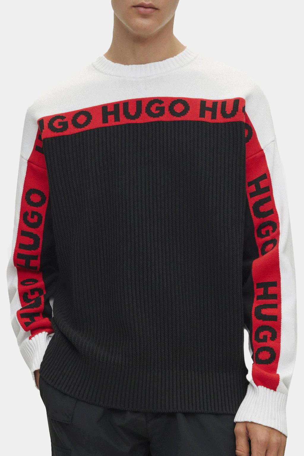 Elevate your casual wardrobe with this bold HUGO men’s sweater, designed with a modern streetwear-inspired aesthetic. Crafted from premium cotton, it offers both comfort and standout style.