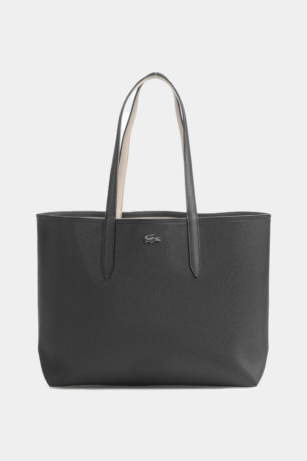 This reversible tote is designed for effortless shoulder carry and features two contrasting colors. Spacious enough to fit a 15‚ ù laptop, it includes a removable pouch for added convenience. One side boasts a grained effect, while the other showcases an embossed pique pattern, inspired by the iconic Lacoste Original L.12.12 polo. Perfect for those seeking a stylish and practical accessory, this tote offers both versatility and sophistication.