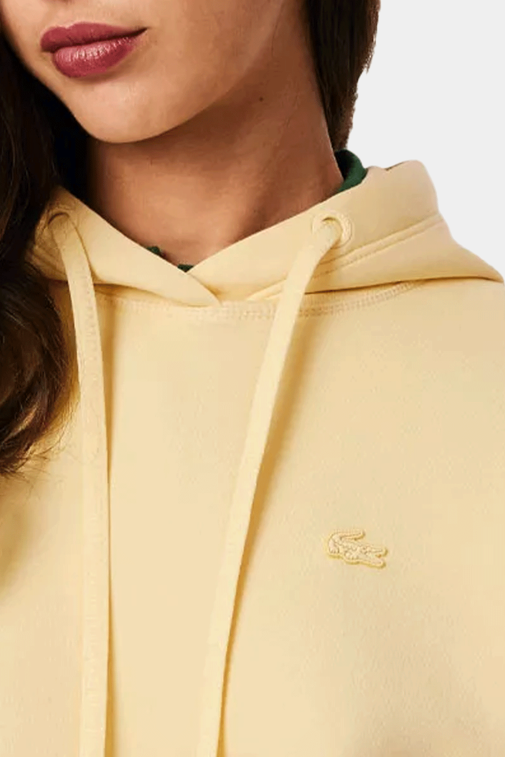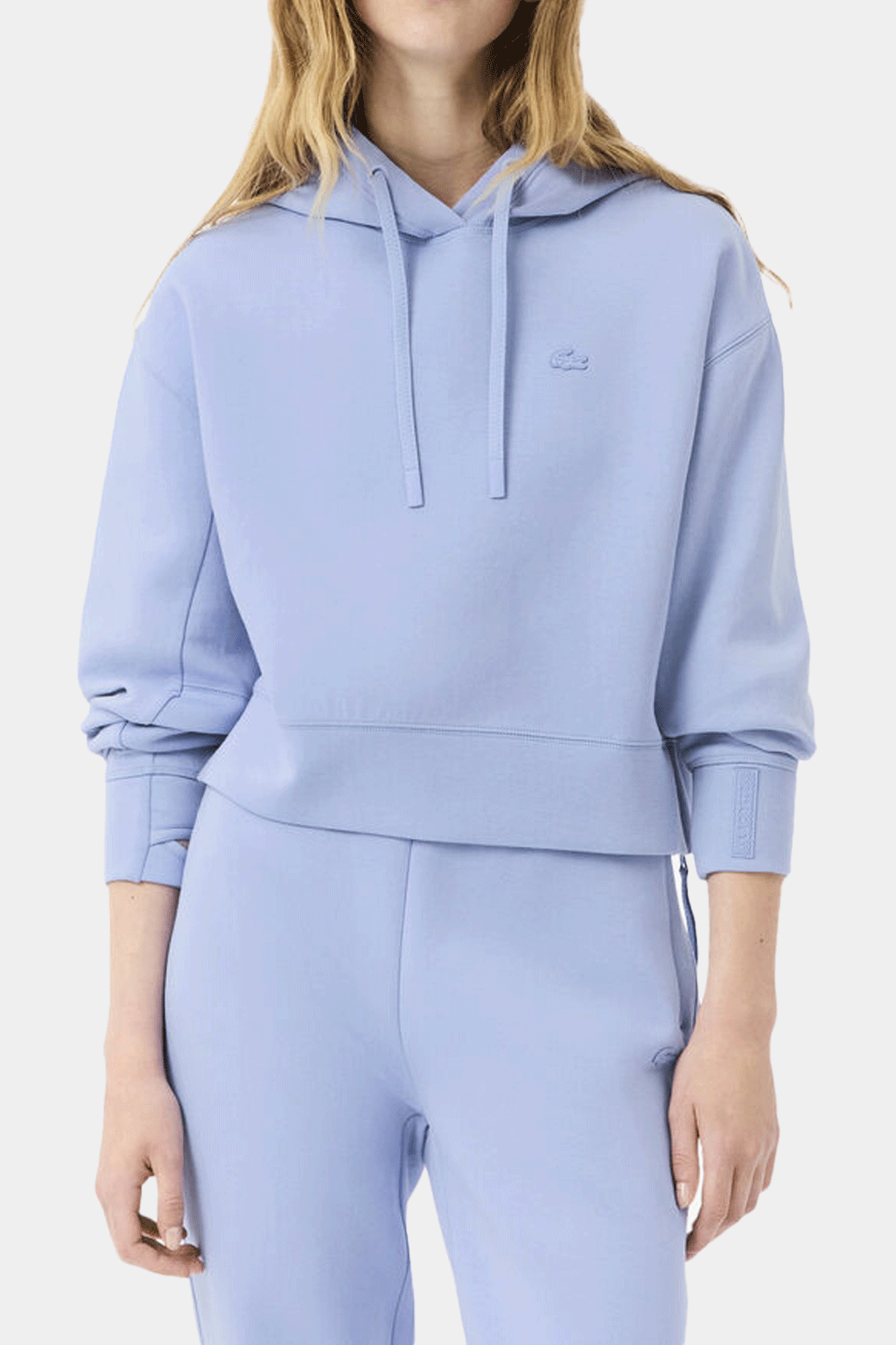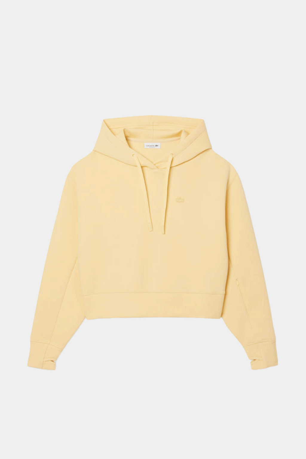 Refresh your casual wardrobe with the Women’s Short Cut Cotton Hoodie from Lacoste — crafted from double-face cotton stretch fabric for soft comfort and a premium feel. Its cropped cut and subtle side-zip split detail give it a modern, fashion-forward silhouette, while thumb-loop cuffs, a sleeve pocket with concealed closure, and the signature silicone crocodile logo on the chest add functional sophistication. With a relaxed fit, straight sleeves and hooded design, this hoodie balances sporty ease and urban style — ideal for layering over tees or pairing with high-waisted trousers or jeans for a chic streetwear look.