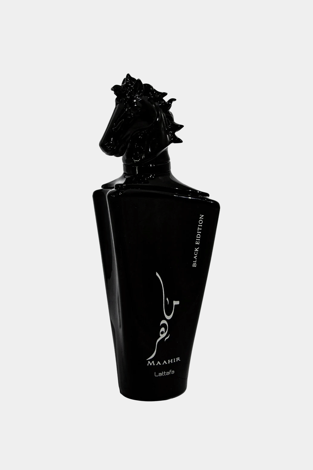 Lattafa Maahir Black Edition is a unisex Eau De Parfum with a warm, spicy amber scent. Launched in 2019, it's a bold addition to any fragrance collection.