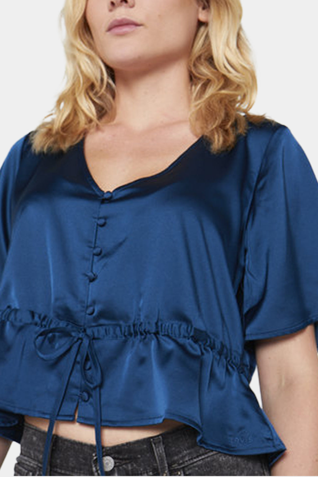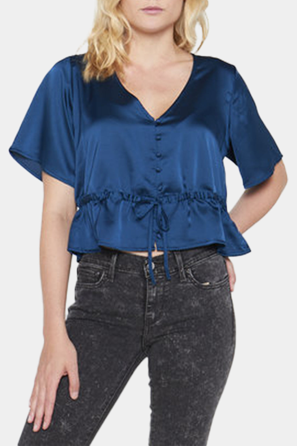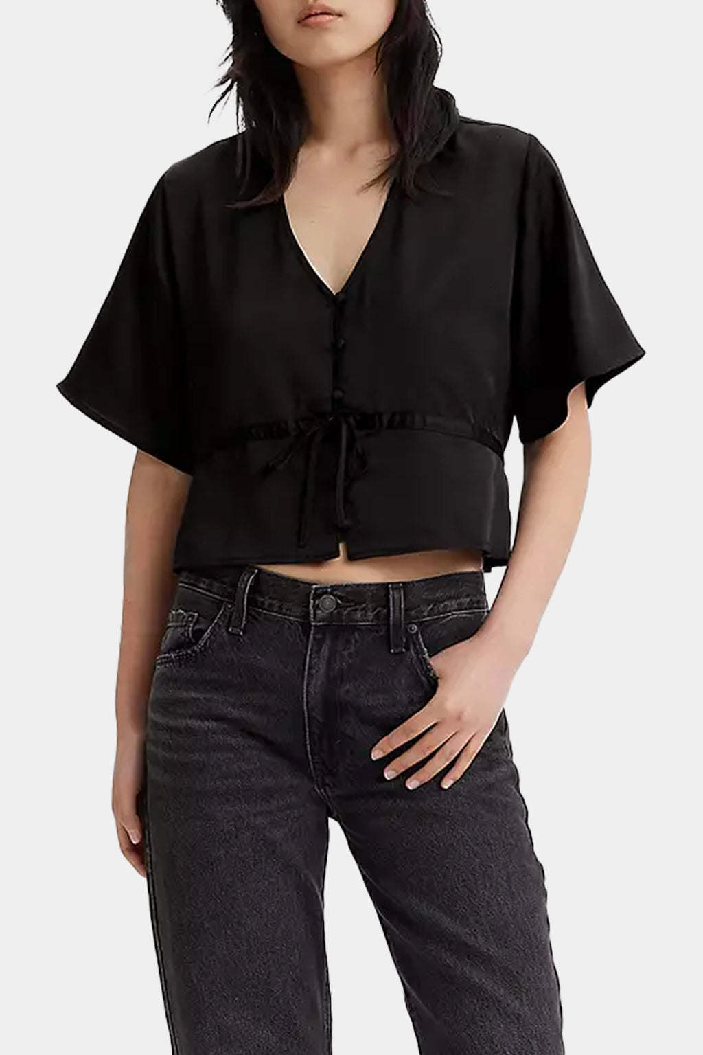Expertly crafted and versatile, the Levi's Lindy Short Sleeve Blouse is the perfect addition to your wardrobe. With its flowy and flattering fit, this blouse effortlessly transitions from day to night. The V-neckline, button-up front, and cinched waist add a touch of elegance, while the flowy short sleeves provide comfort and style.