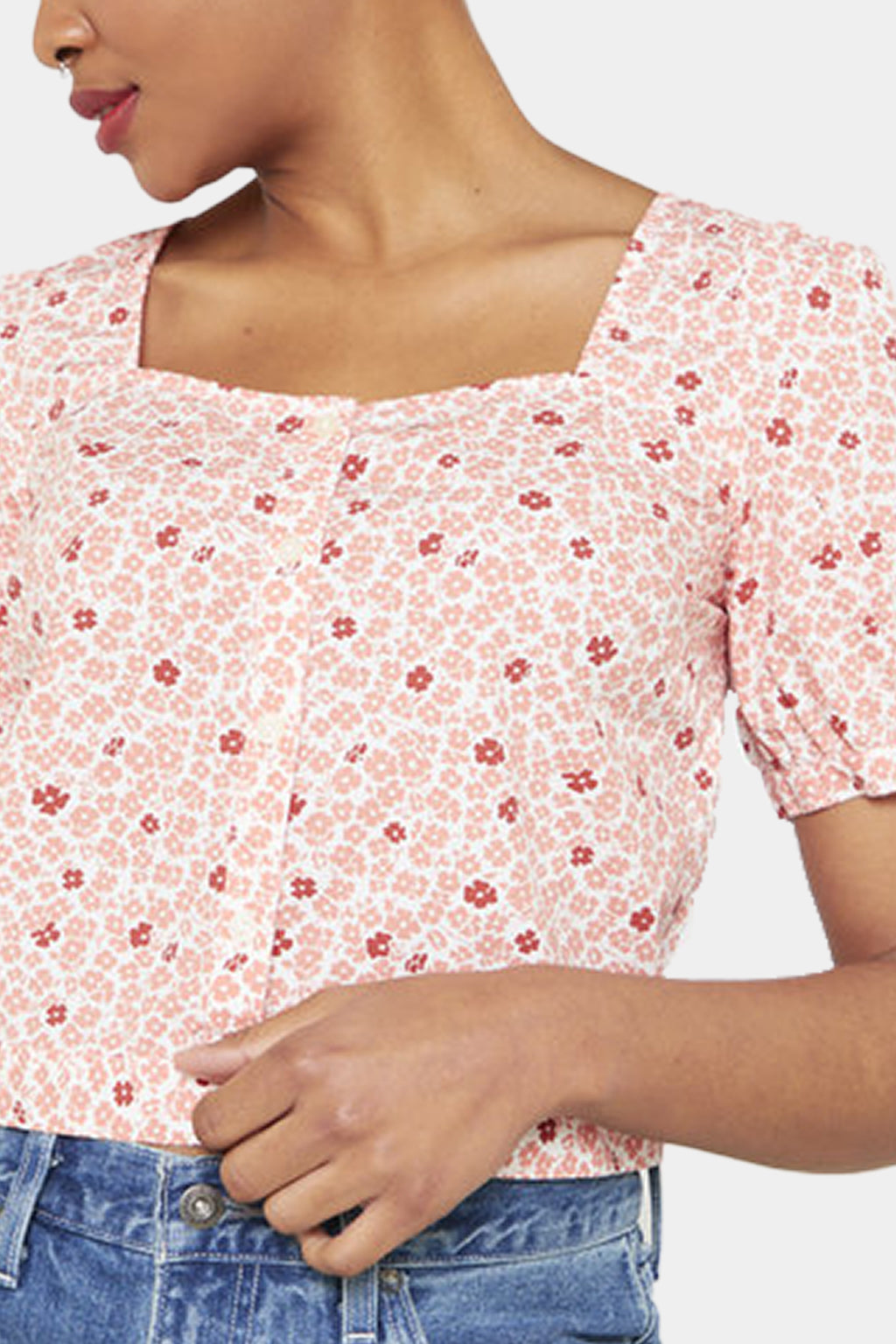 Discover the essence of spring with our Simone Top. Featuring a relaxed, cropped fit, a sweetheart neckline, button-up front, and short voluminous sleeves, this top is designed to elevate your spring style.