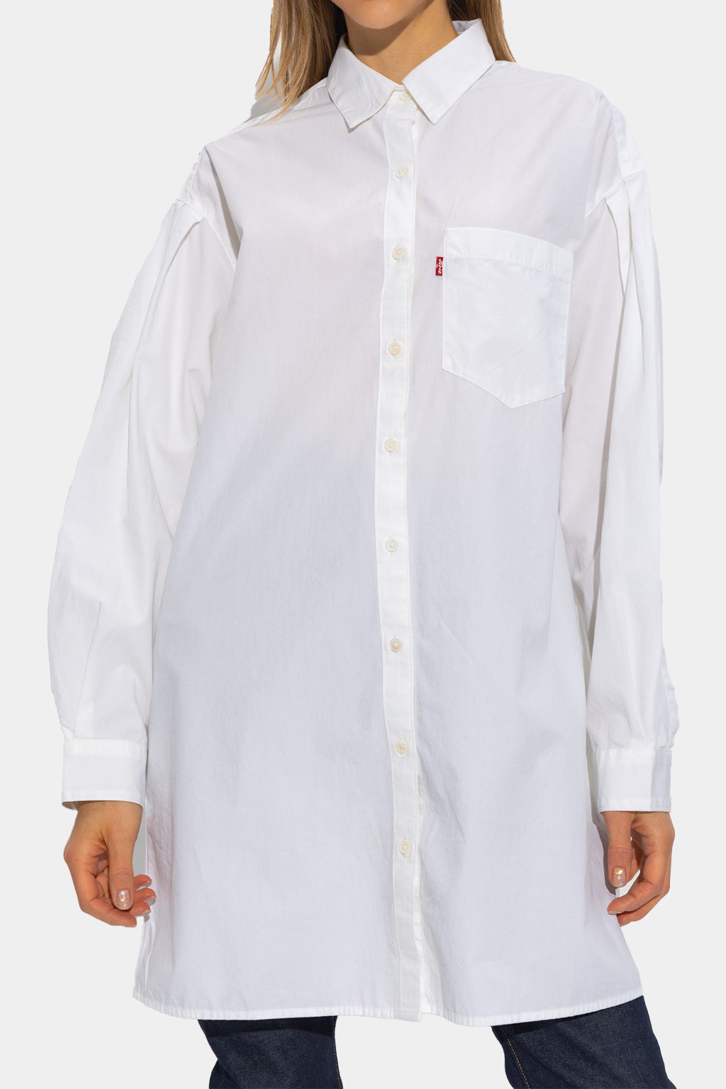 Stay stylish and comfortable in the White ‚ òRhea‚ a Shirt Dress from Levi‚ as. Made of 100% cotton, this dress features a collared neckline, button fastening, and a slip chest pocket with a red logo label. The long sleeves with button cuffs provide a classic, sophisticated look. Perfect for any occasion.