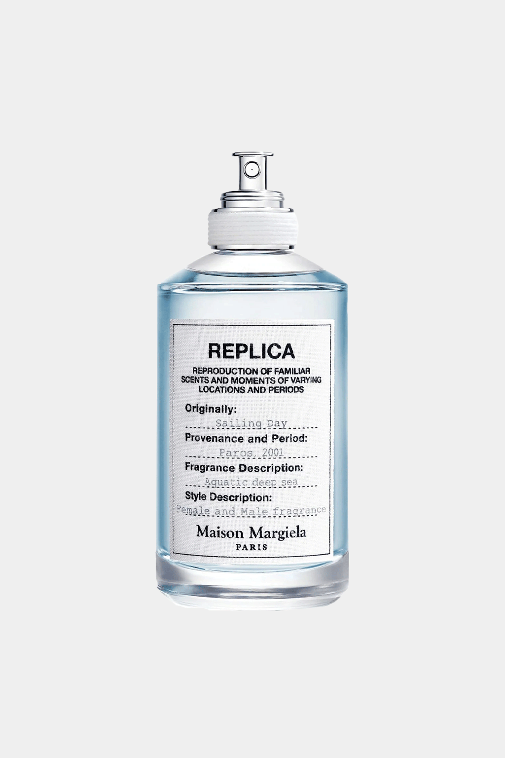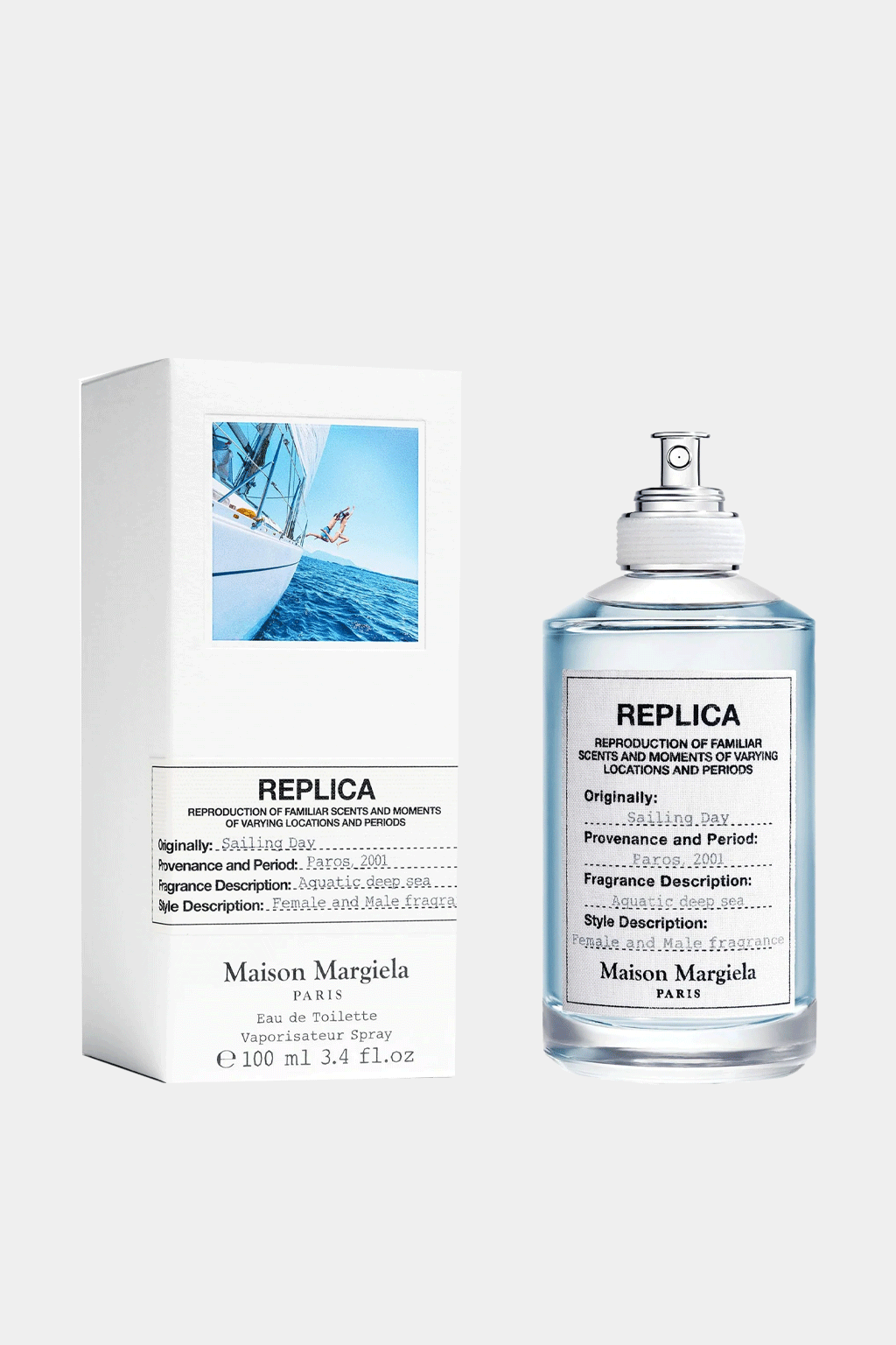 Experience the invigorating allure of Maison Margiela's Replica Sailing Day, a unisex Eau de Toilette that captures the refreshing spirit of the sea. Launched in 2017, this Aromatic Aquatic fragrance evokes the sensation of a brisk, sun-drenched day on open waters.