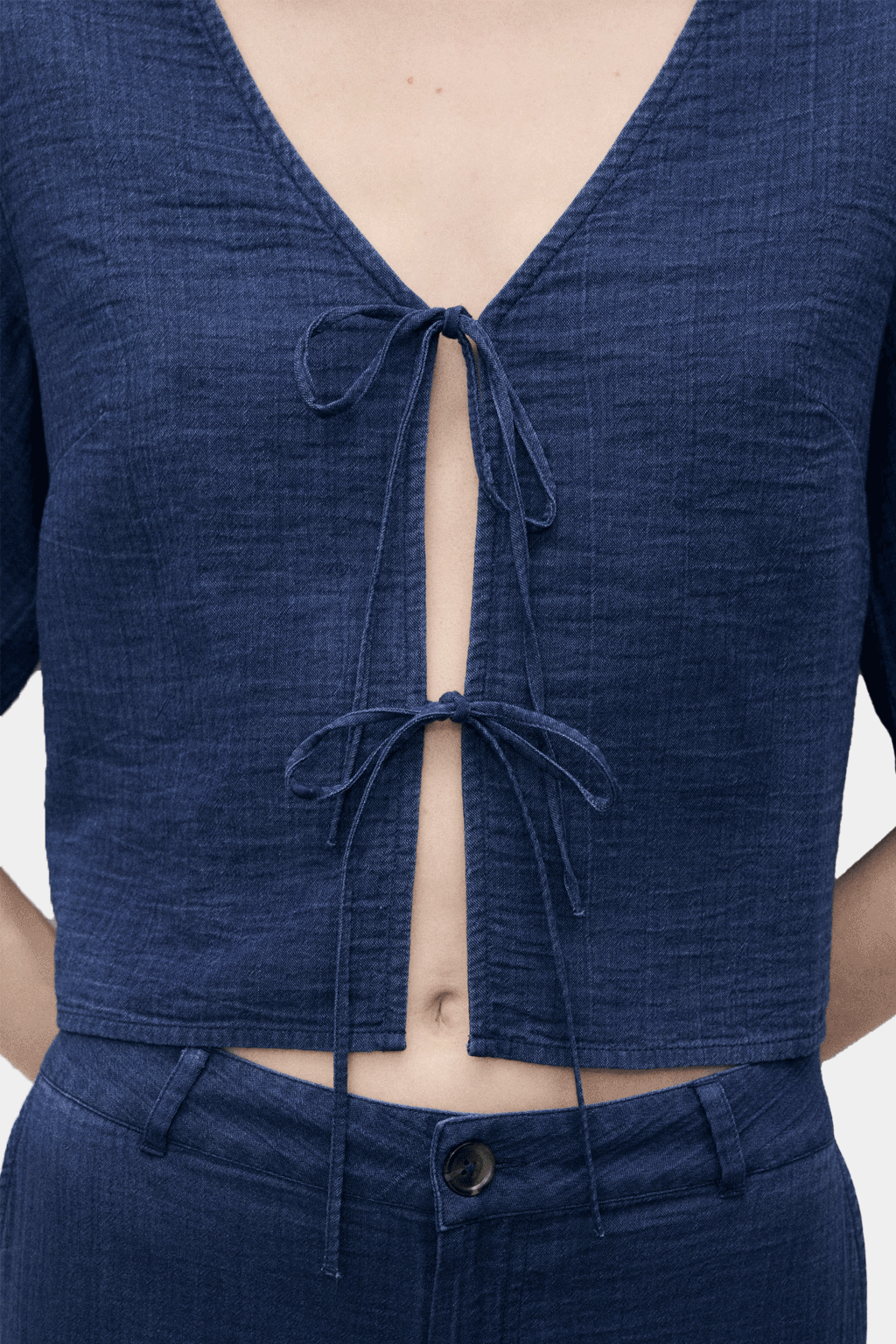 Add a soft, feminine touch to your summer wardrobe with this flowy denim top by Mango, designed with adjustable bow straps for a playful twist. Made from lightweight denim, this relaxed-fit women‚ as top is perfect for warm-weather layering. Style it with your favorite jeans, shorts, or skirts for an effortlessly chic look.