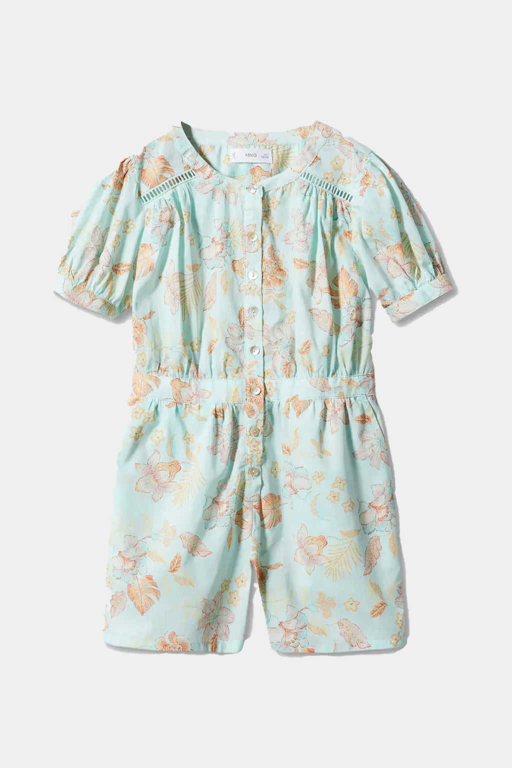 Elevate your summer style with our Mango Printed Short Jumpsuit. Made from 100% cotton, this jumpsuit features a trendy round neck, short sleeves, and button closure for easy wear. Perfect for any occasion, experience the comfort and fashion-forward design this jumpsuit has to offer.