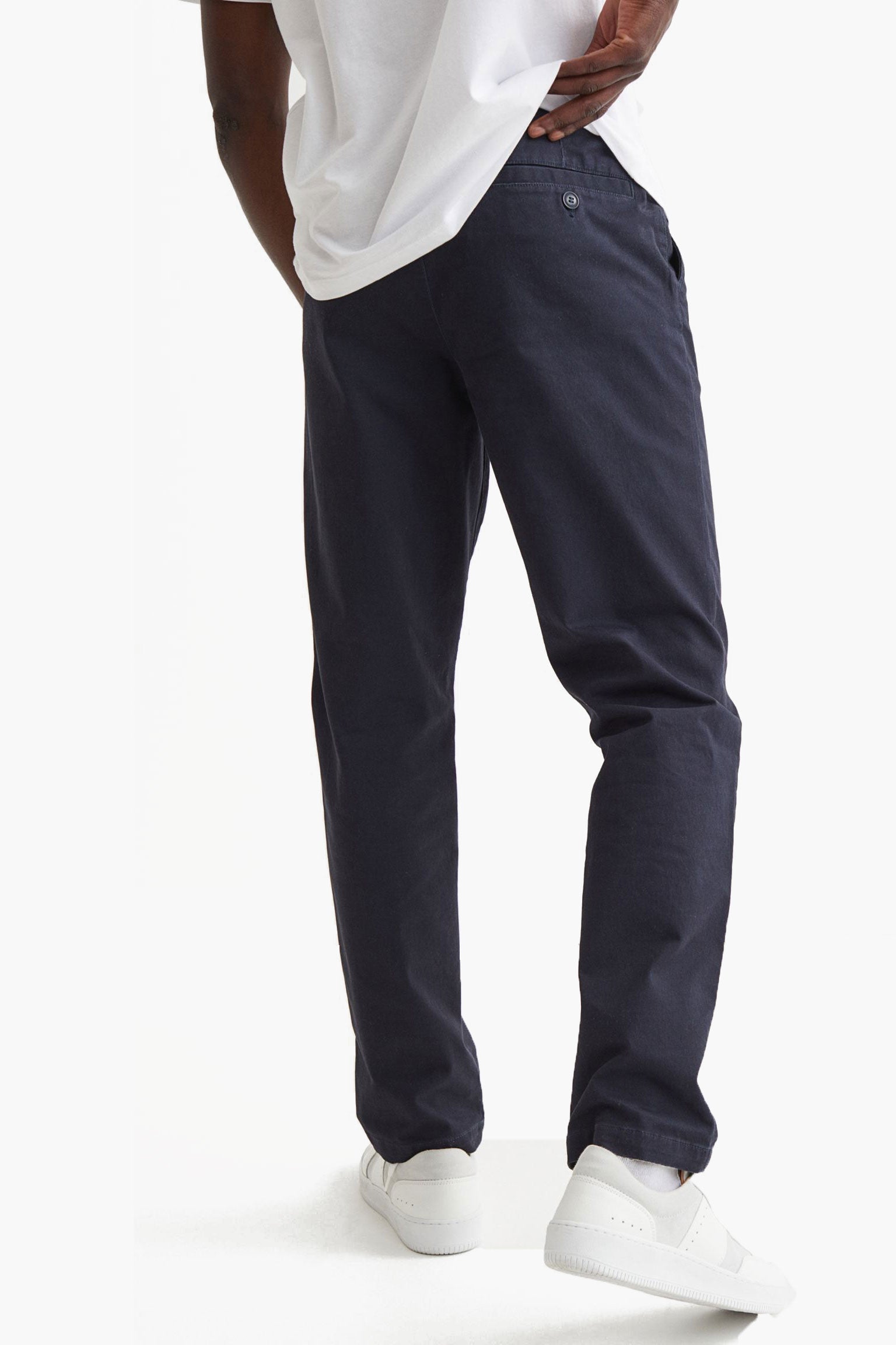 Chinos in extra-stretchy cotton twill with a zip fly, side pockets, a coin pocket, and welt back pockets with a button. Slim fit - a fit that is close-fitting at the thighs, knees, and ankles to create a fitted silhouette.