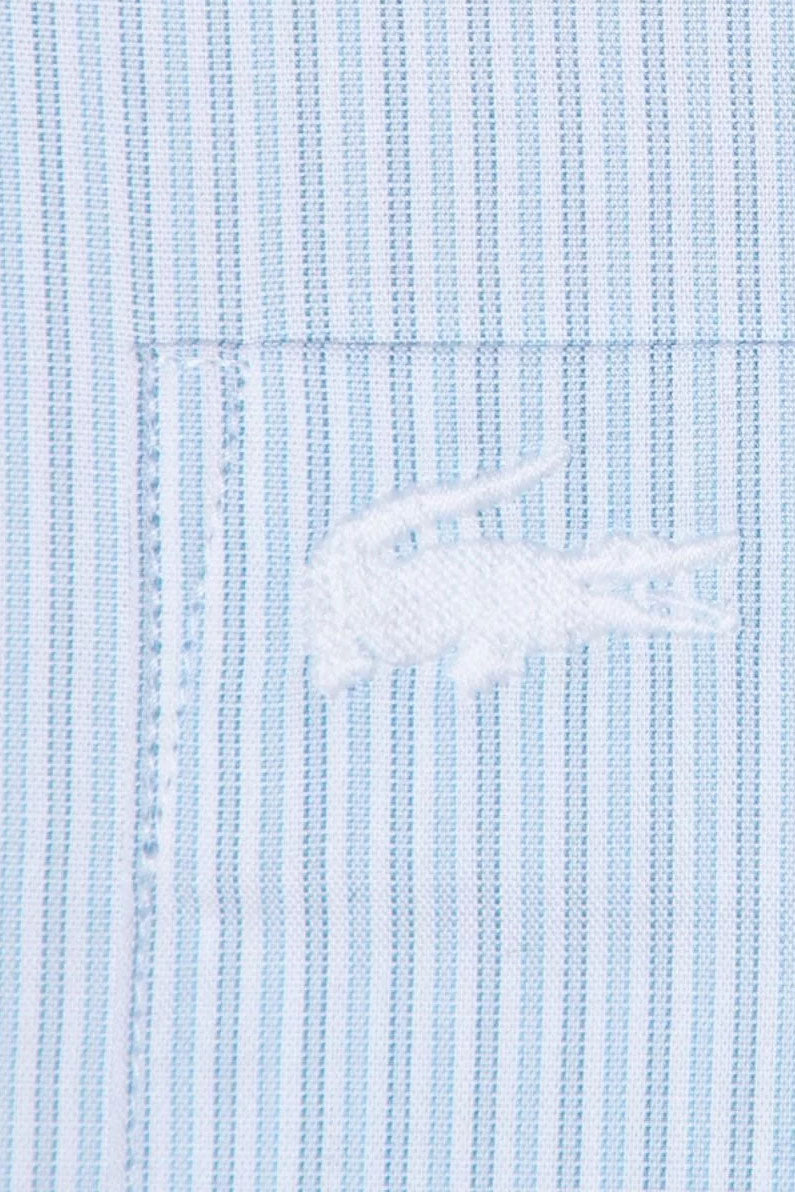 In cotton poplin with a chest pocket and a slightly asymmetrical hemline, this elegant shirt features vertical pinstripes. A true seasonal must-have .This Lacoste shirt is perfect for those who are always on the go.