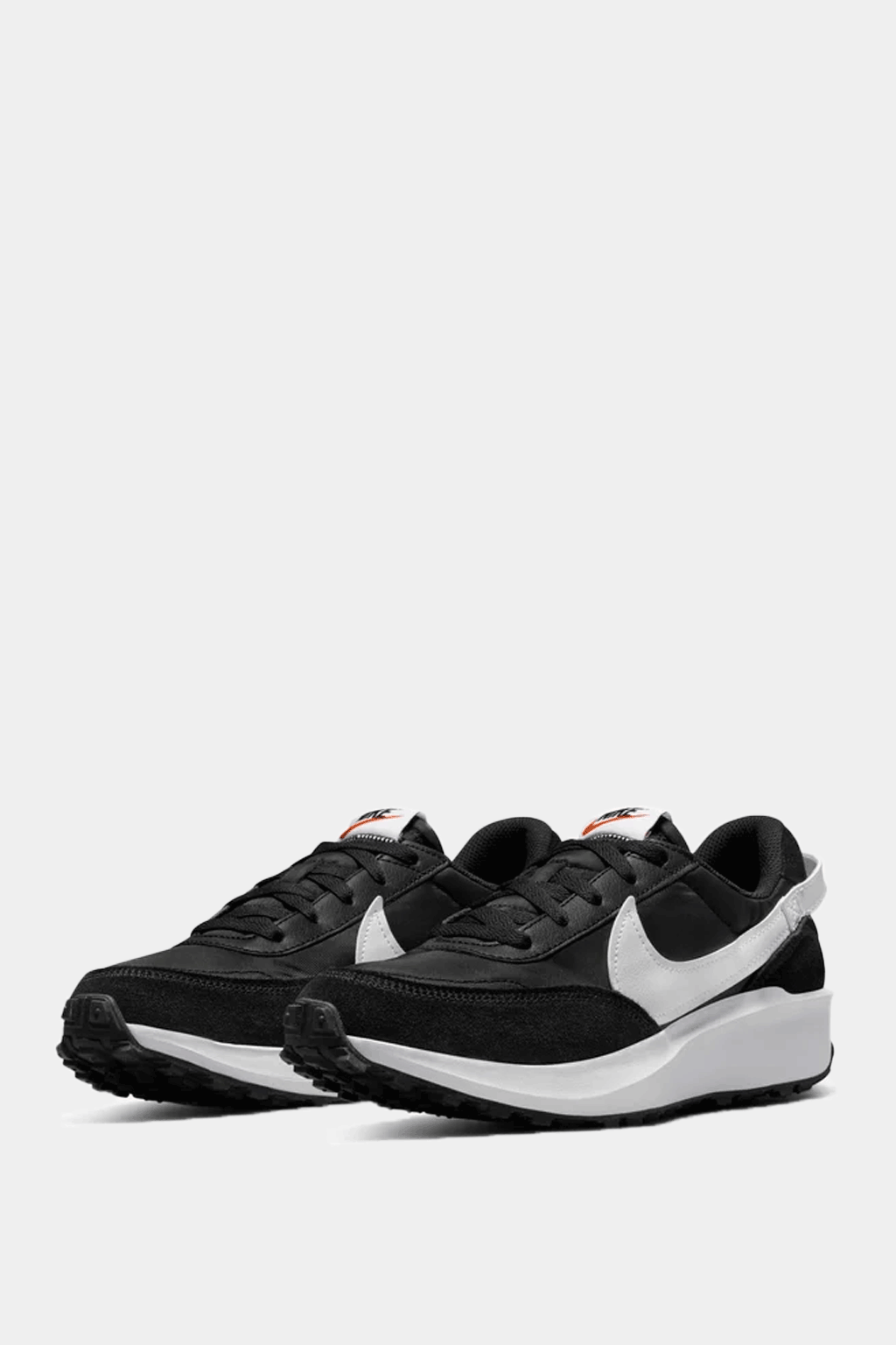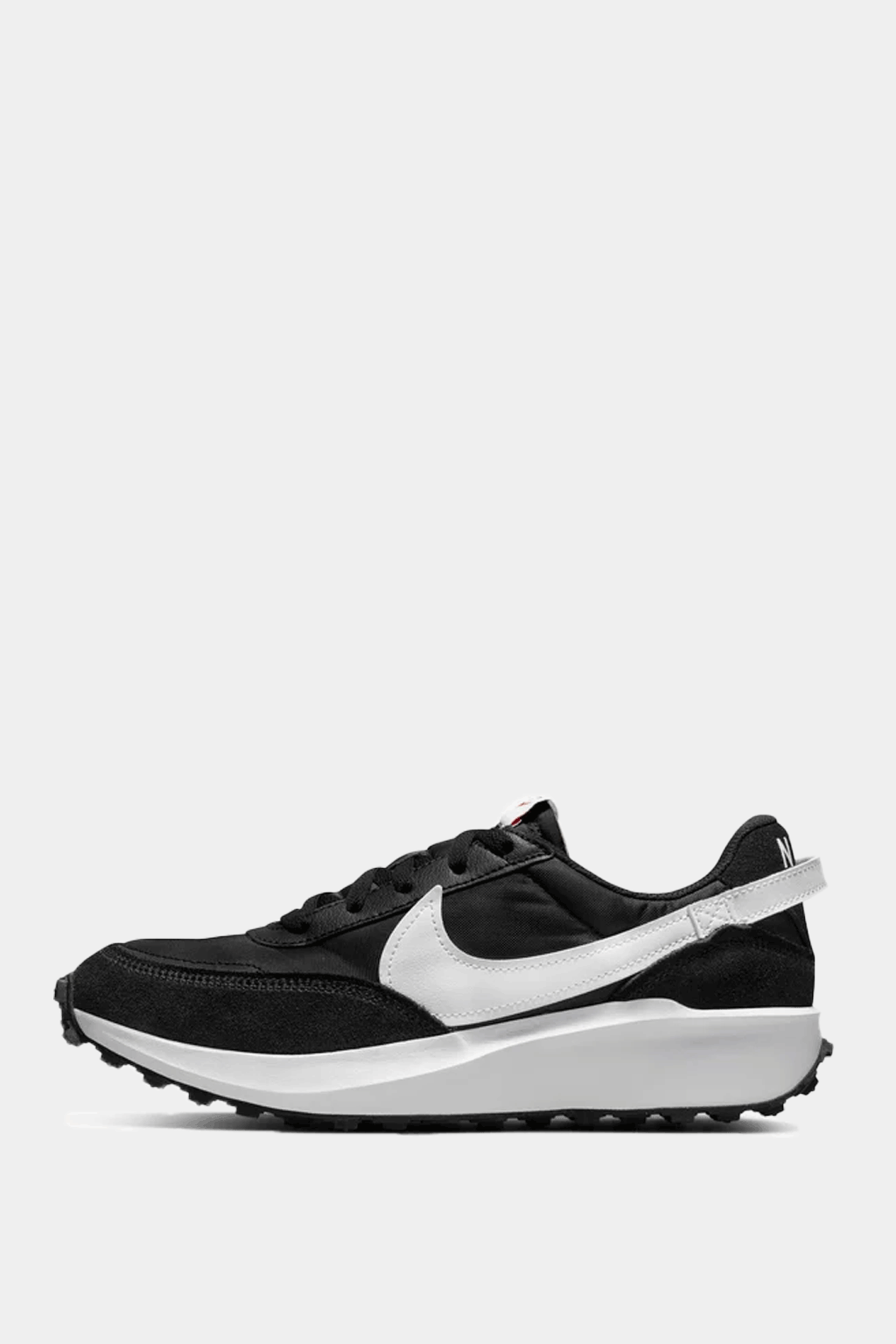 The Waffle Debut revives a retro running aesthetic with modern comforts. The sleek black suede and mesh upper is contrasted by an oversized white Swoosh that wraps around the heel, echoing classic Nike branding. An elevated foam midsole adds a lift and cushioned feel, atop the signature waffle outsole for grippy traction. The exposed foam tongue and padded collar enhance vintage charm and everyday wearability.