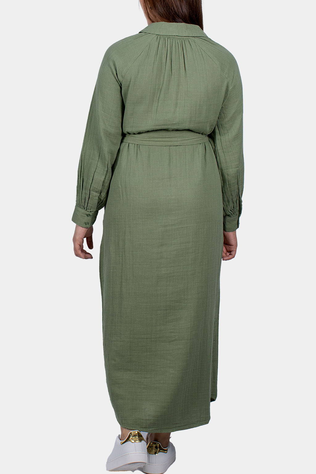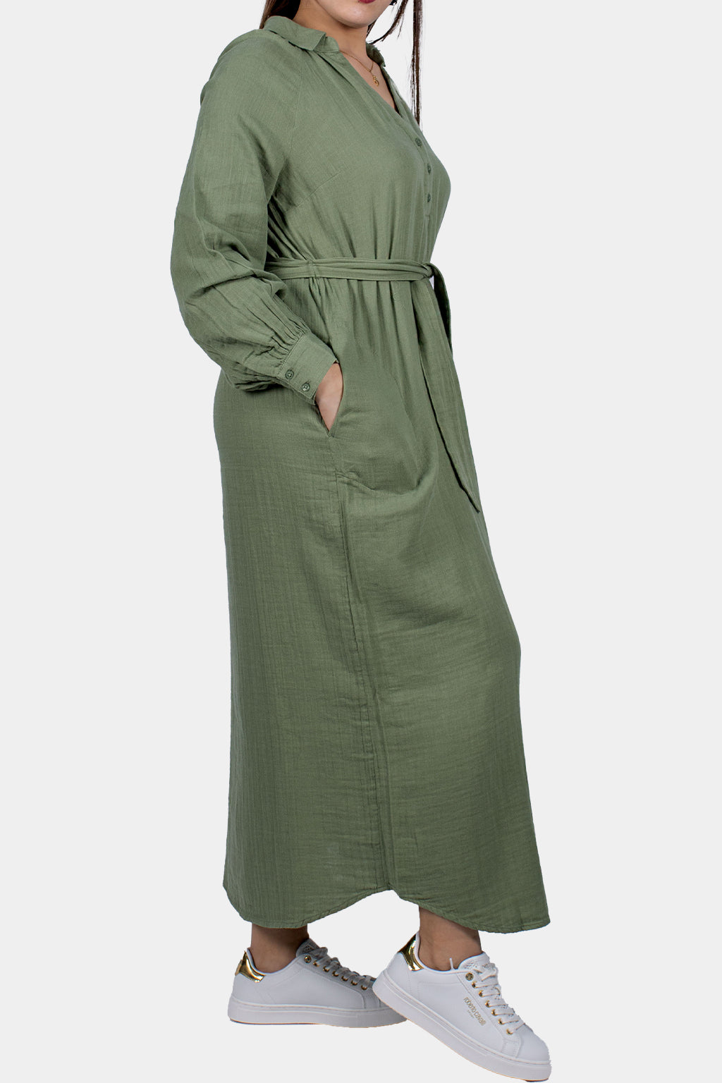 This linen-blend midi dress from Old Navy offers a smart look with its pointed collar and belted waist. With buttons down the front and a detachable belt, you can adjust the shape to your preference. Its Cool Comfort‚Ñ¢ technology ensures a fresh feel even on warmer days.