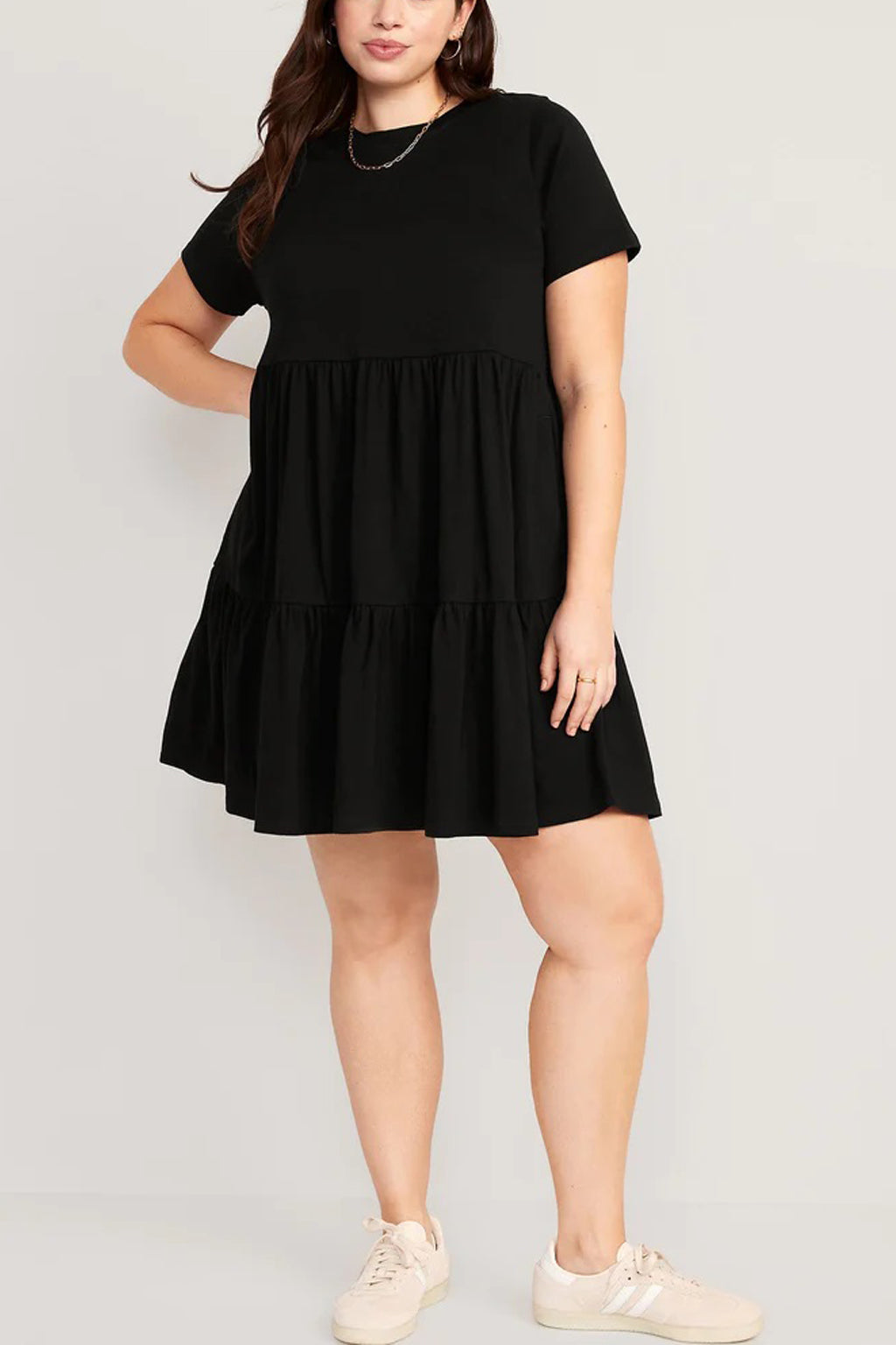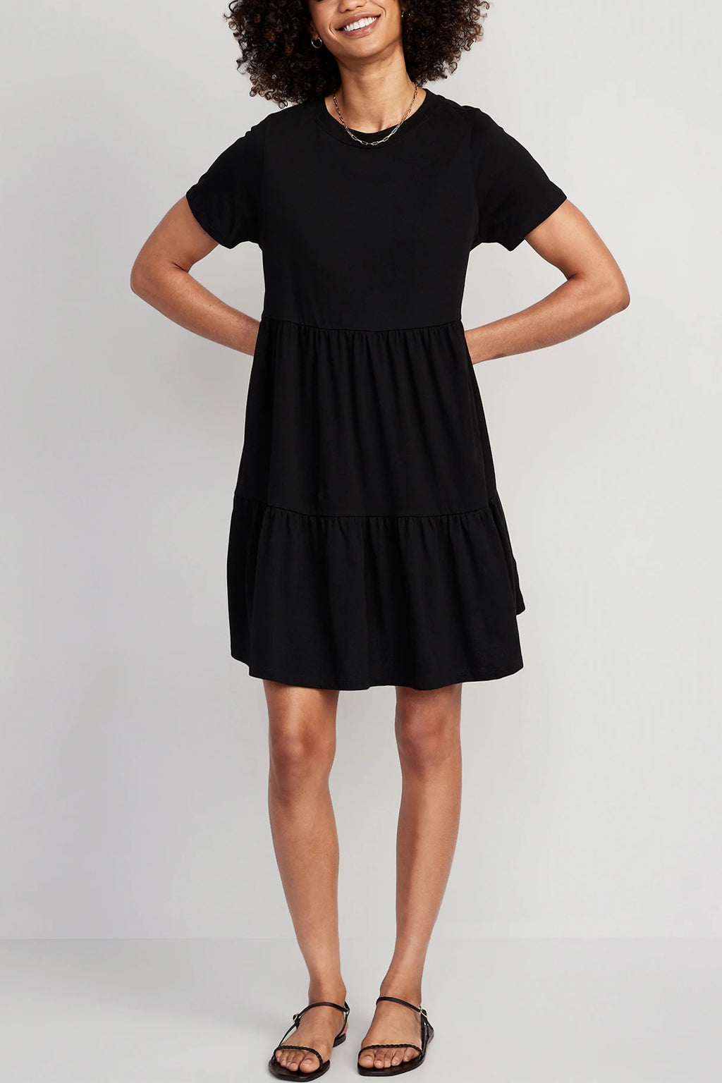 Breezy and effortless, this Old Navy Tiered Mini Swing T-Shirt Dress is designed with an A-line shape, allowing you to dress it up or down with ease. Perfect for any occasion.