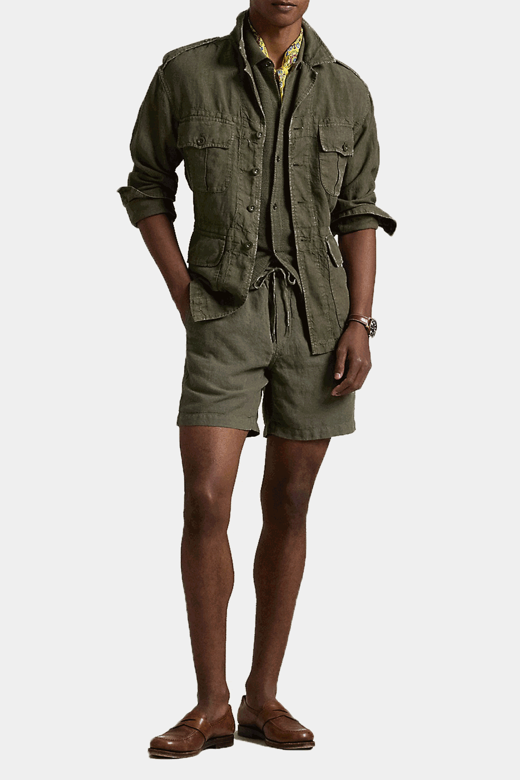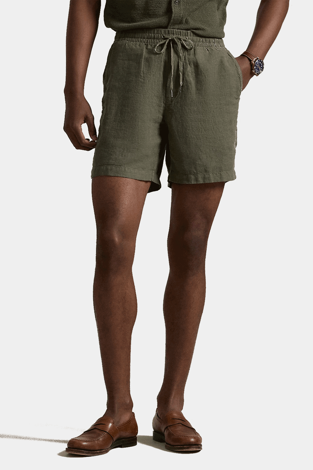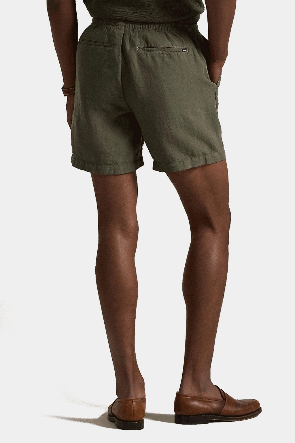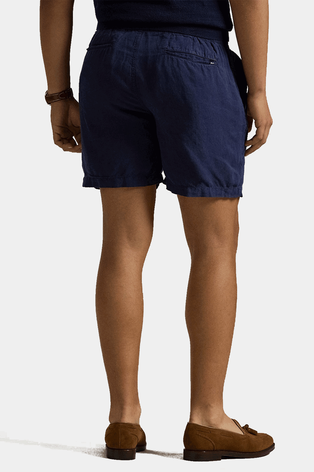 Upgrade your style with Polo Ralph Lauren's 6" Polo Prepster Linen Shorts. Crafted from lightweight 100% linen, these classic-fit shorts feature a comfortable elastic waistband with a drawstring for a relaxed fit. Designed with two slanted front pockets and two box pockets at the back, they combine functionality and fashion. The iconic "Polo" label on the back pocket adds a signature touch.