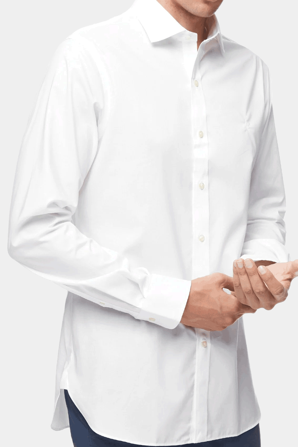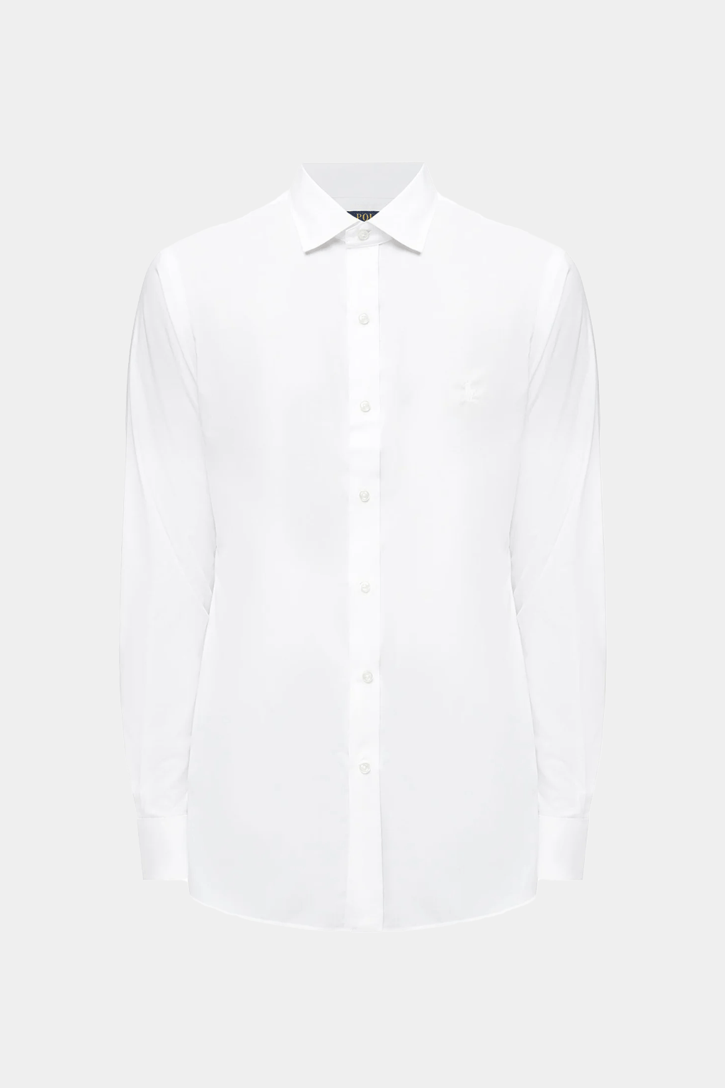 A classic essential, this Polo Ralph Lauren white shirt is crafted from soft, breathable 100% cotton for all-day comfort. Featuring a tailored fit with a button-down collar and long sleeves, it offers a crisp, polished look perfect for both formal and casual occasions. Finished with the iconic embroidered Pony logo on the chest, this versatile shirt elevates any outfit with timeless style.
