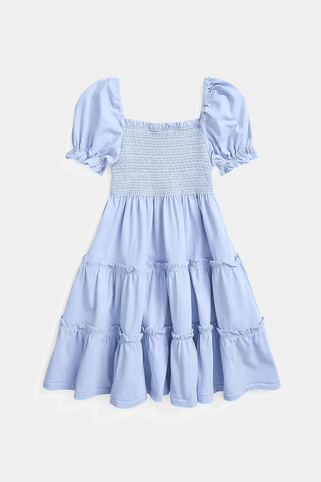 Elevate your summer wardrobe with the Polo Ralph Lauren Smocked Cotton Jersey Dress. Designed for ultimate comfort and style, this dress features a smocked bodice, a playful tiered skirt, and charming ruffle trim. Crafted from washed cotton jersey, it combines breathability and softness for all-day wear. Perfect for sunny days, this dress effortlessly blends fashion and function, making it a must-have for your warm-weather collection.