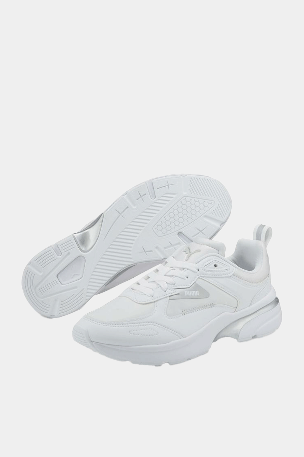 Turn heads with every step in the Puma FS Runner Metallic Women's Sports Shoes‚ a bold fusion of athletic energy and modern elegance. Inspired by the dynamic lines of the sports pitch, these sneakers feature a sleek silhouette enhanced by faux leather overlays, deep embossed detailing, and trendy metallic accents for a stylish, sophisticated edge. Designed for all-day comfort and versatile wear, they bring a youthful, sporty vibe to both casual and sporty-chic outfits.