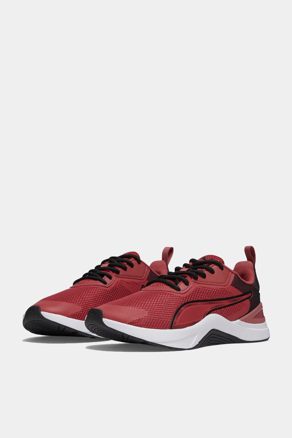 PUMA Infusion WNS¬¨‚ †is a dynamic women's training shoe designed for performance and style. It features a breathable mesh upper, a full-length ProFoam EVA midsole for lightweight cushioning, and a TPU heel clip for added stability. The heat-cut PUMA Formstrip and rubber outsole provide grip and sleek visual appeal, making it ideal for both gym workouts and casual wear.